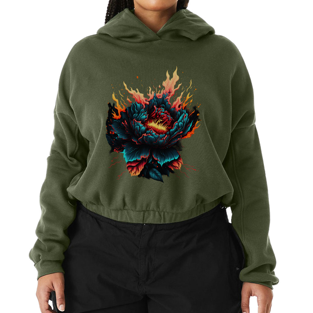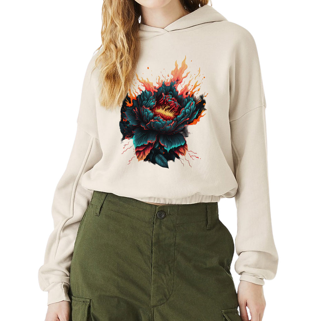 Abstract Flower Cinched Bottom Hoodie – Beautiful Women’s Hoodie – Colorful Hooded Sweatshirt