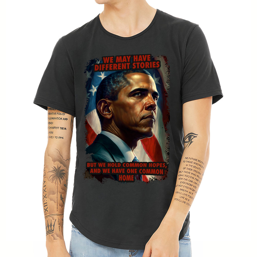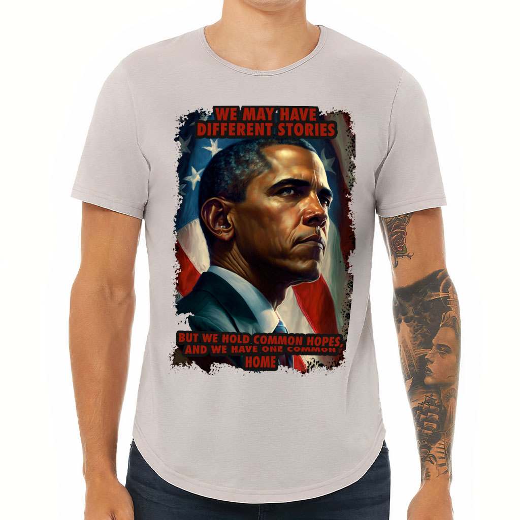 America Design Curved Hem T-Shirt is no ordinary piece of clothing. Its 3/8 neck binding, subtle