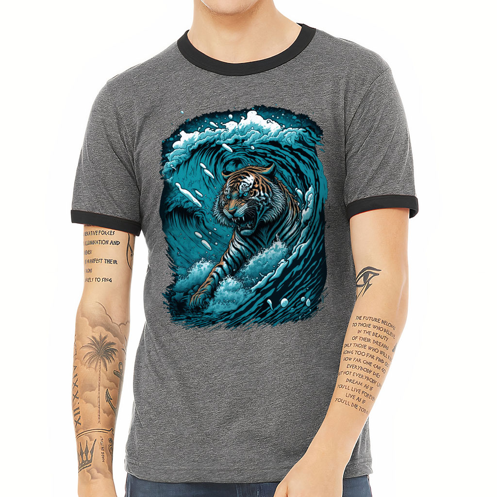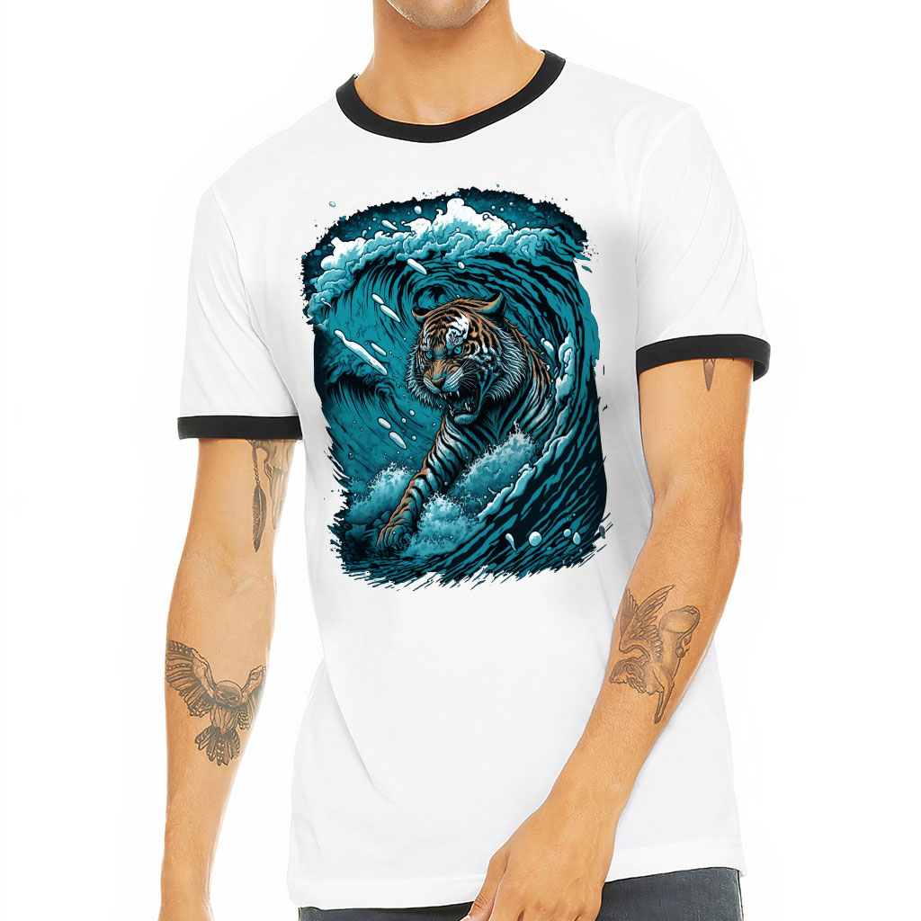 This trendy T-Shirt for men is made of a lightweight and soft cotton-poly blend, breathable and comfortable to wear. Angry Tiger Ringer T-Shirt will give you an excellent wearing experience all day.