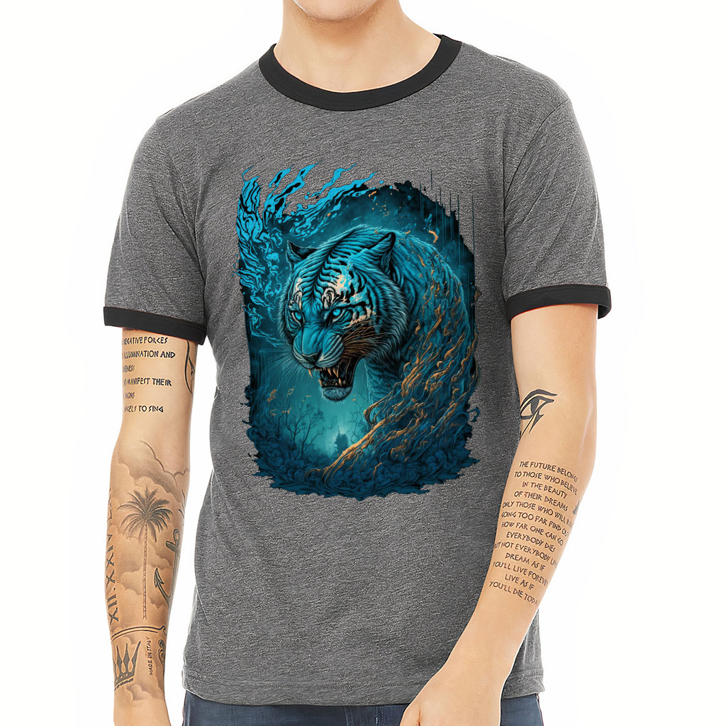 This trendy T-Shirt for men is made of a lightweight and soft cotton-poly blend, breathable and comfortable to wear. Beautiful Tiger Ringer T-Shirt will give you an excellent wearing experience all day.