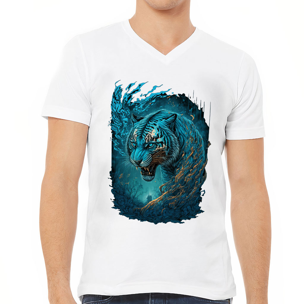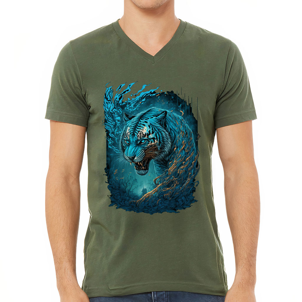Beautiful Tiger V-Neck T-Shirt is proudly made with 7x less water than average manufacturers, in recycle-friendly facilities that also guarantee zero sweatshop conditions.