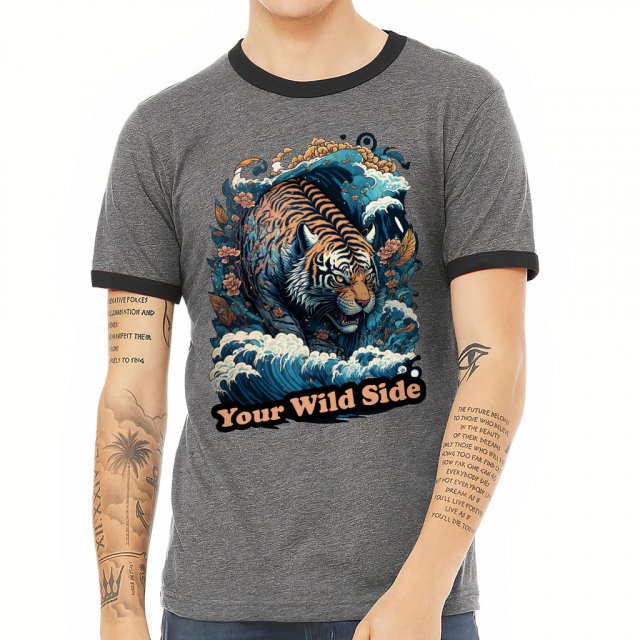 Tiger Design Ringer T-Shirt – Cool T-Shirt – Graphic Ringer Tee