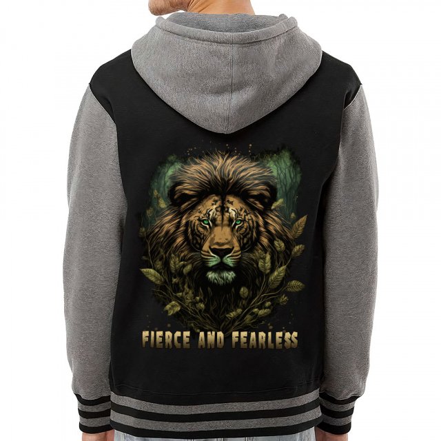 Lion Design Varsity Hoodie – Graphic Zip Hoodie – Art Hooded Sweatshirt