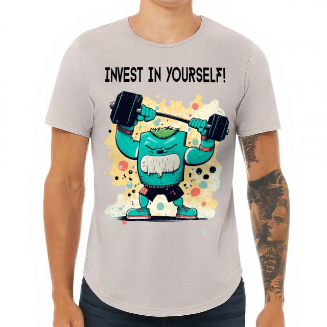 Invest in Yourself Curved Hem T-Shirt – Printed T-Shirt – Art Curved Hem Tee