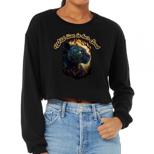 Cool Panther Cropped Long Sleeve T-Shirt – Cat Women’s T-Shirt – Animal Long Sleeve Tee