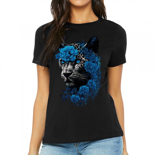 Panther Face Women’s T-Shirt – Floral T-Shirt – Beautiful Relaxed Tee