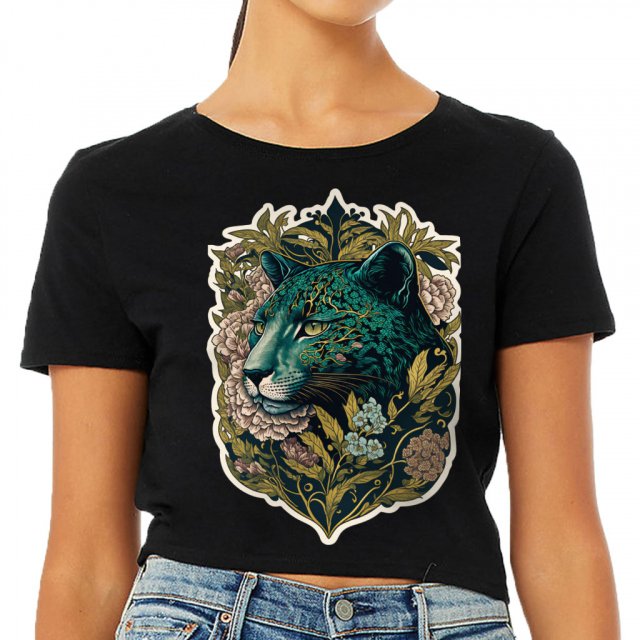 Panther Women’s Cropped T-Shirt – Art Crop Top – Floral Cropped Tee