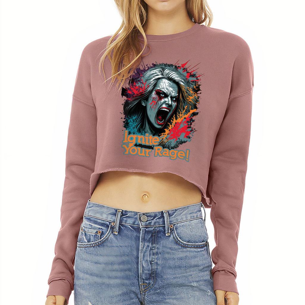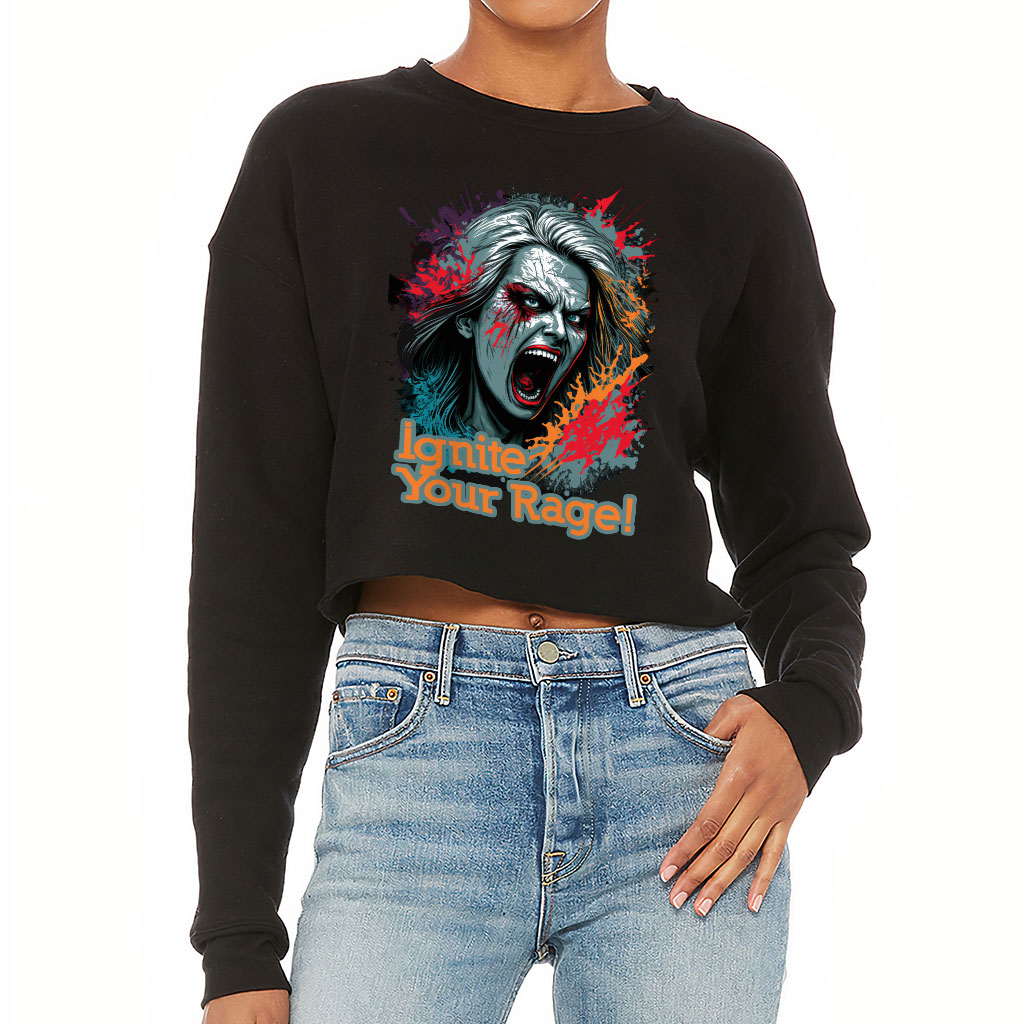 A classic women’s cropped sweater in comfy, super-soft fleece designed for warmth and breathability. Colorful Graphic Cropped Sweatshirt features an on-trend drop-shoulder seam and a retail fit. Finished with ribbed cuffs and a raw hem finish. Offered in poly-cotton sponge fleece.