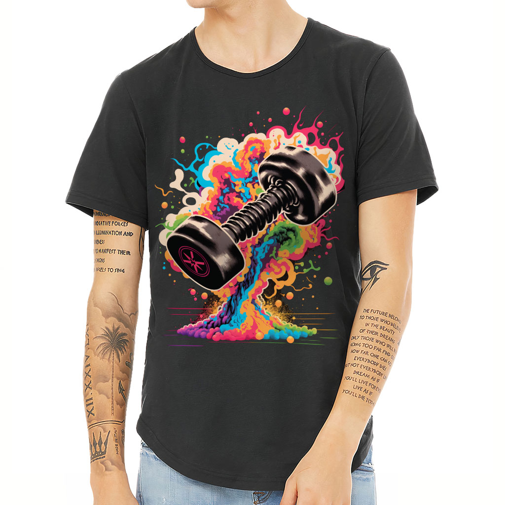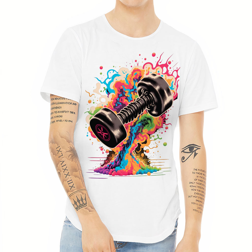 Colorful Print Curved Hem T-Shirt is no ordinary piece of clothing. Its 3/8 neck binding, subtle