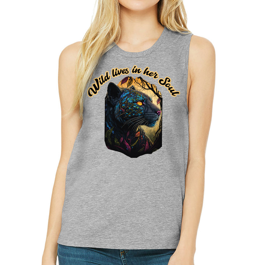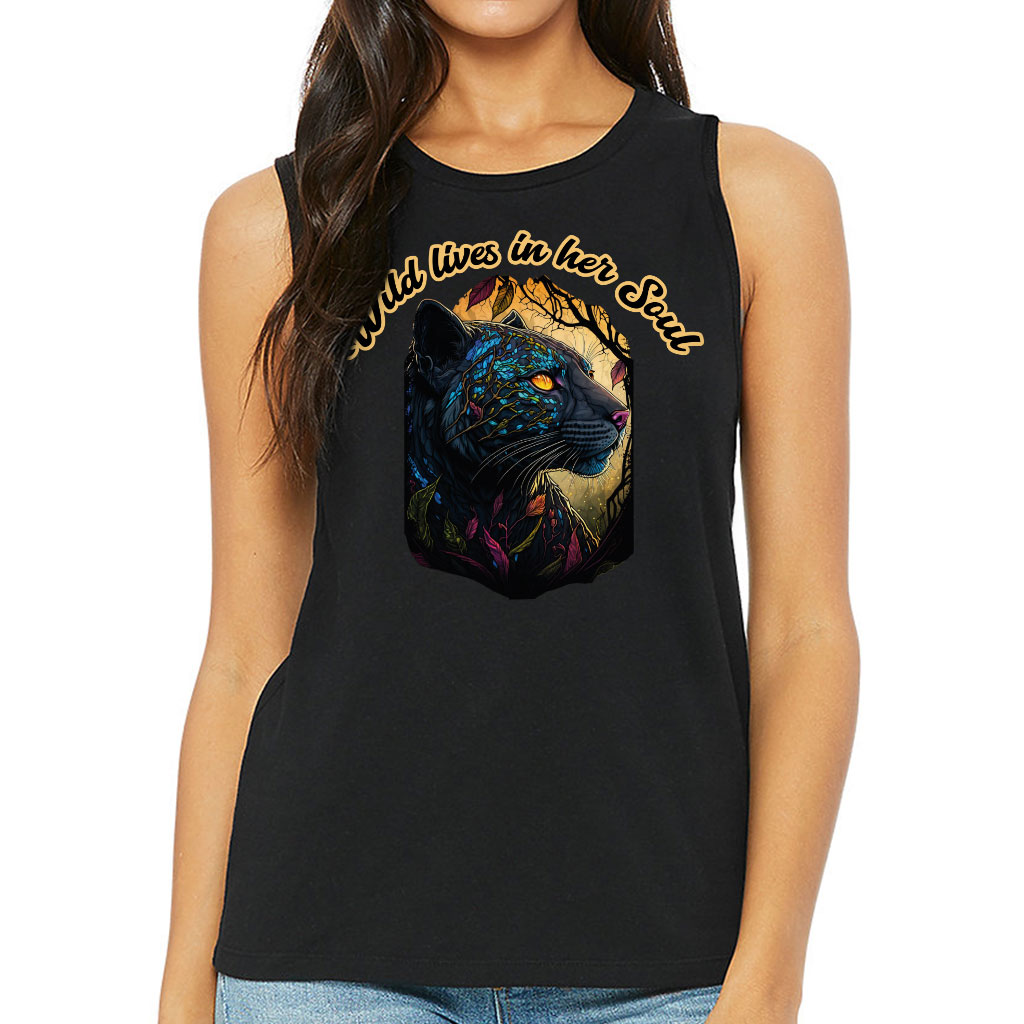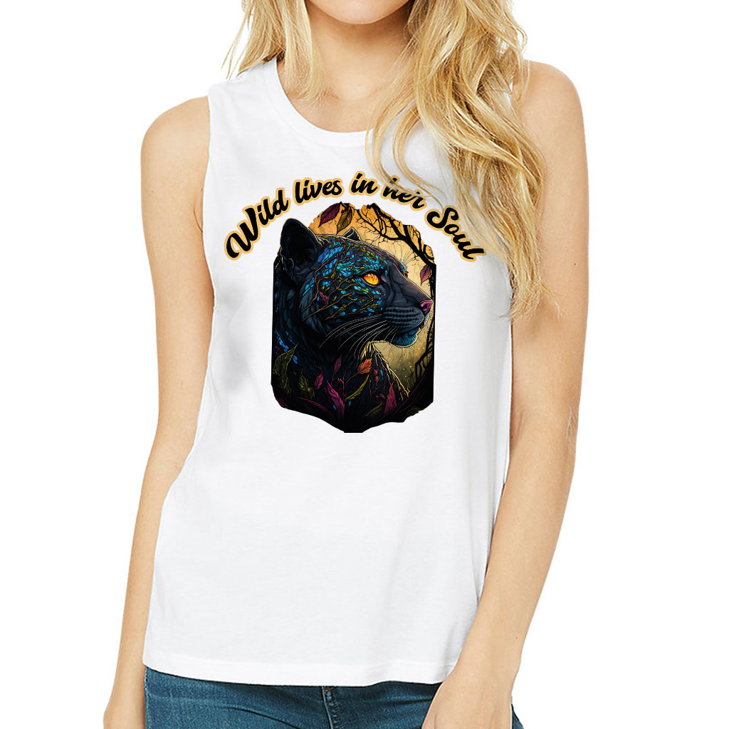 Cool Panther Women’s Muscle Tank is made from high-quality materials. The soft fabric fits perfectly to the body and suits any type of figure. Our products will make your everyday comfortable, as well as add charm to your image and emphasize your style.