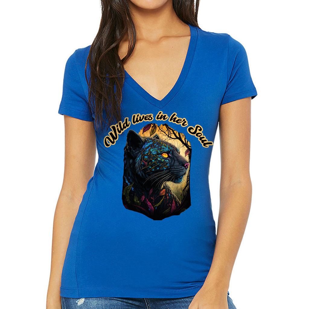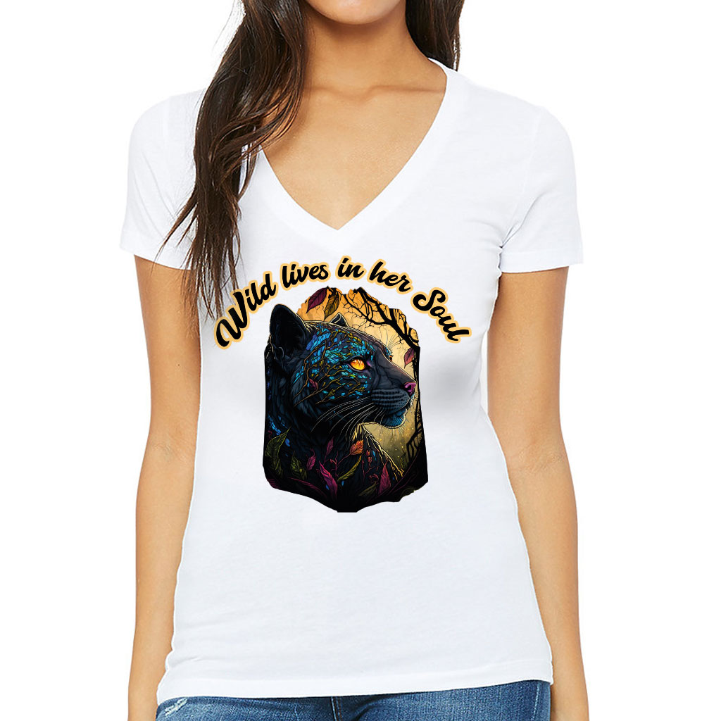 Cool Panther Women’s V-Neck T-Shirt – Cat V-Neck Tee – Animal T-Shirt