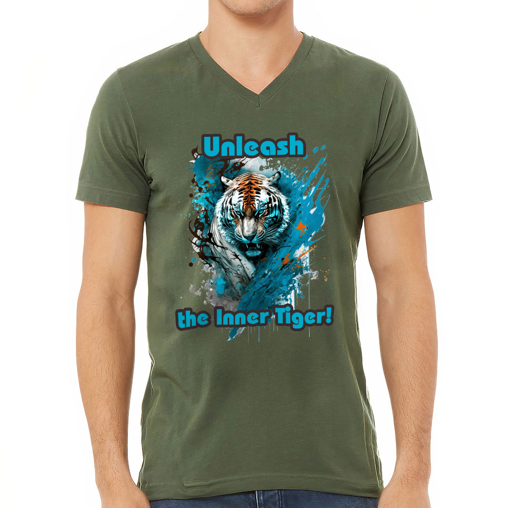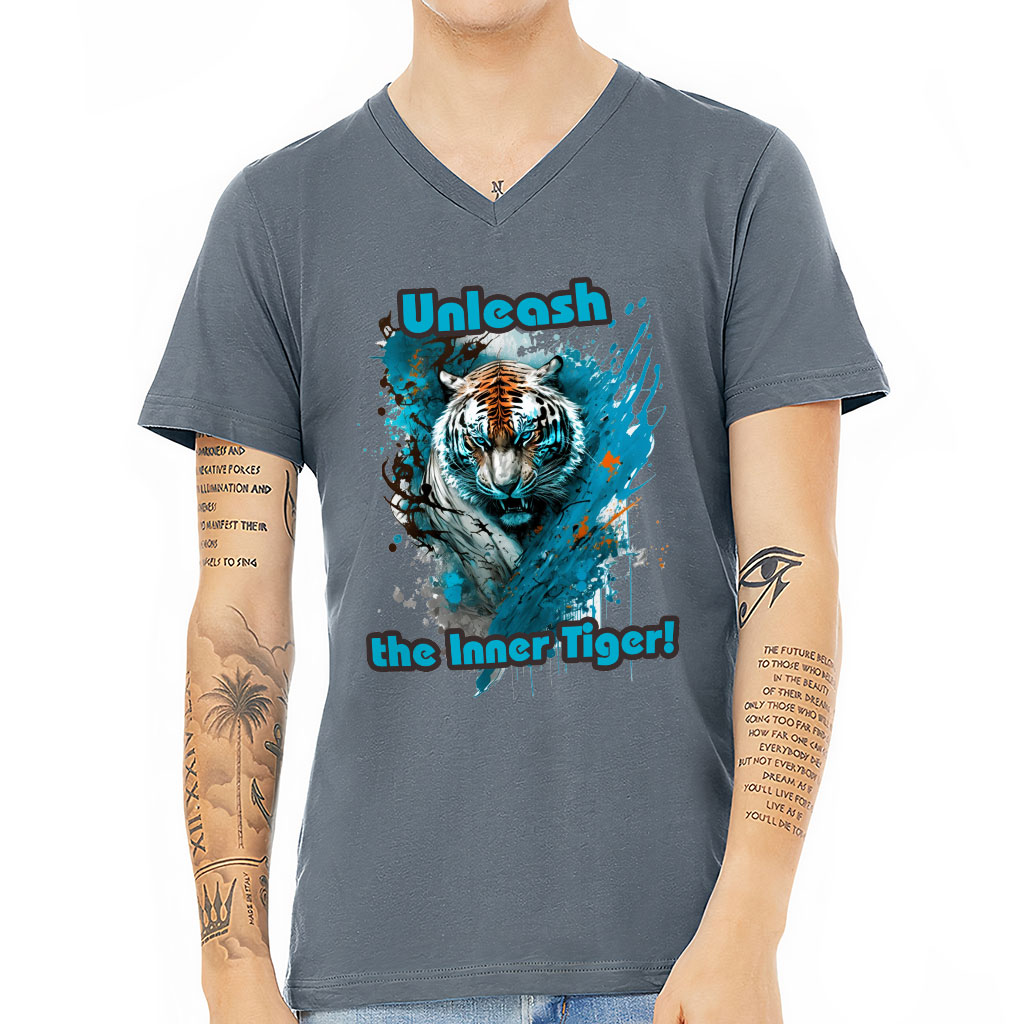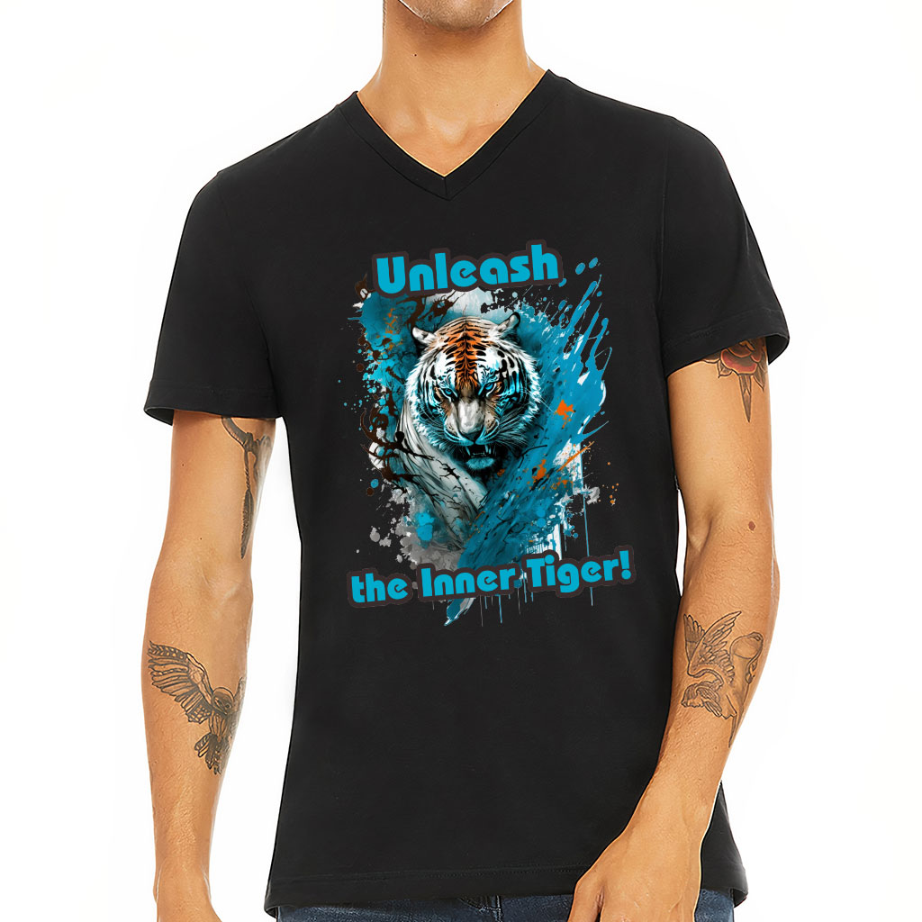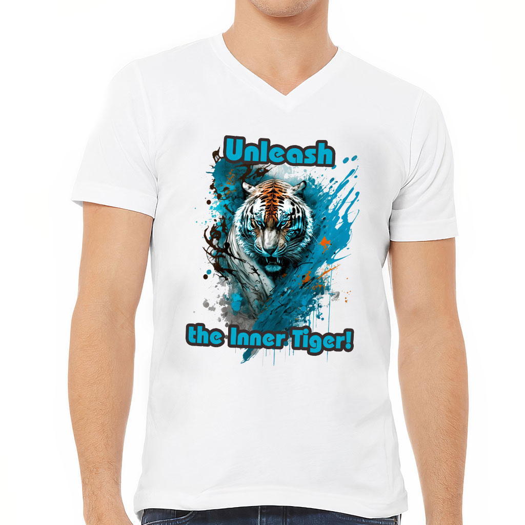 Cool Tiger V-Neck T-Shirt – Tiger T-Shirt – Paint V-Neck Tee