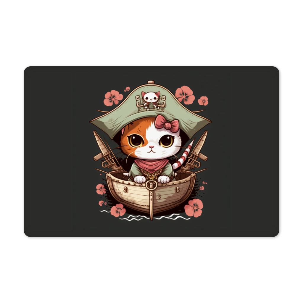 Cute Pirate Pet Food Mat is easy to use for a variety of pets. You can place it under cat fountains to collect splashes, it also works well with raised feeders, and can be used under litter boxes to help prevent mess.