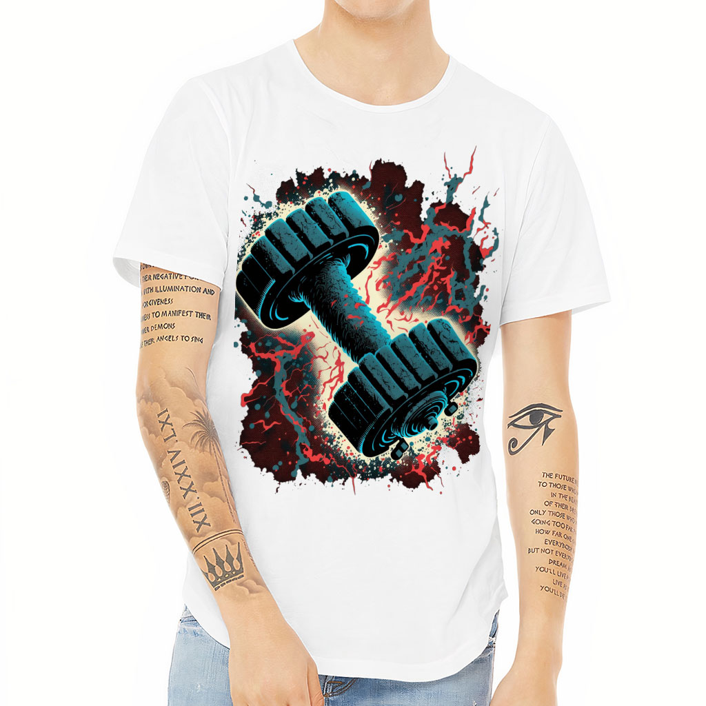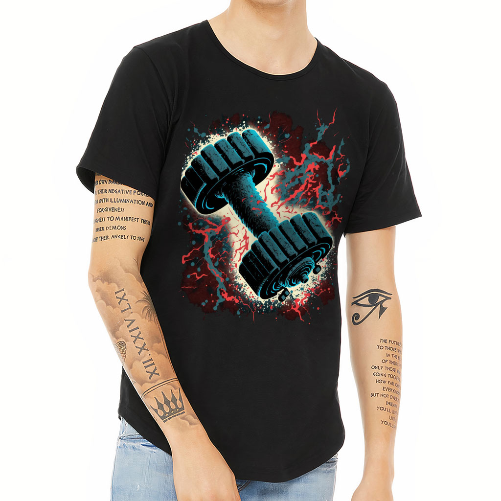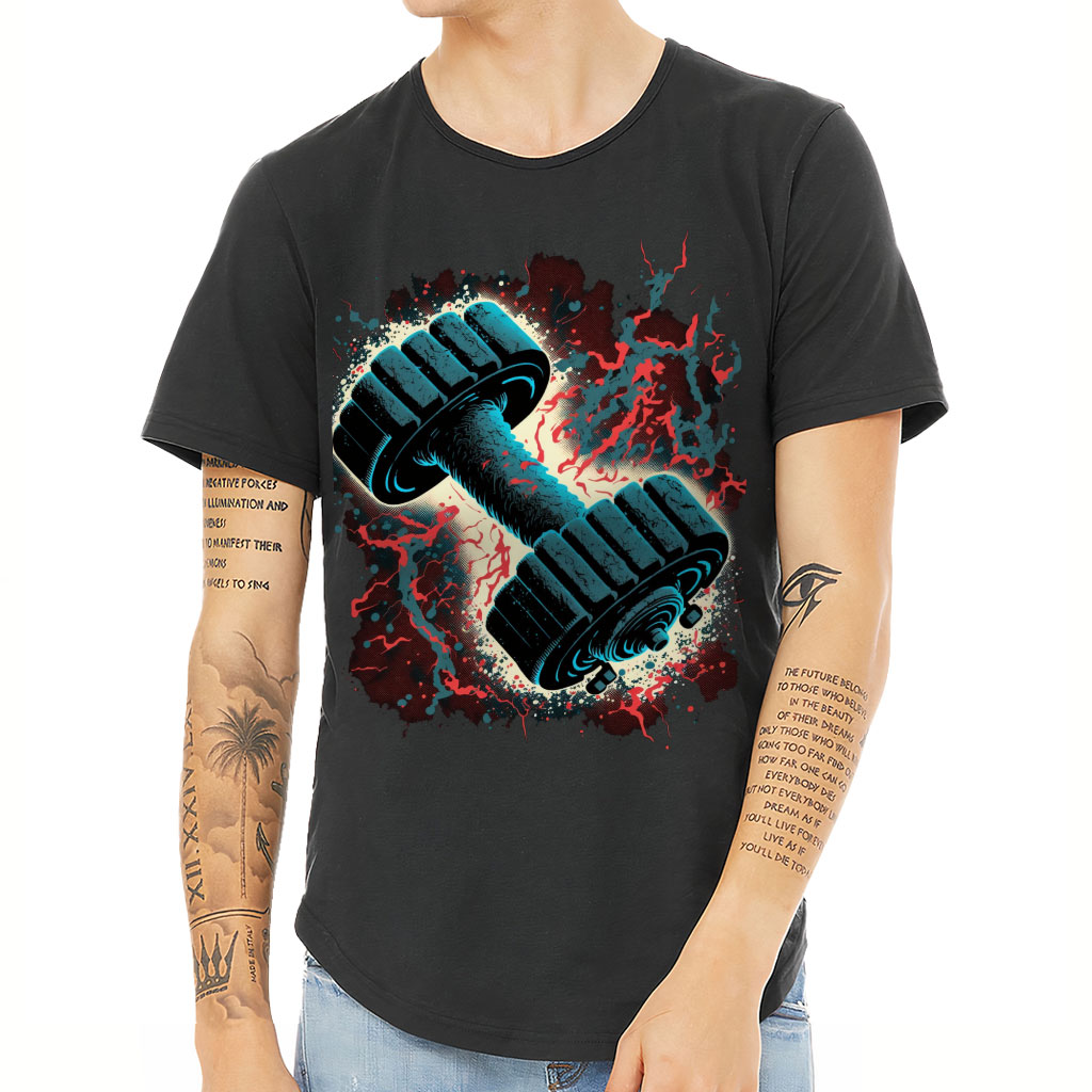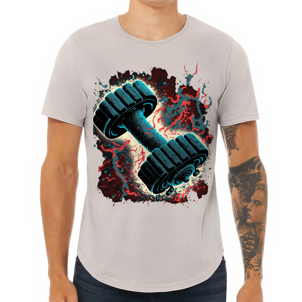 Dumbbell Curved Hem T-Shirt is no ordinary piece of clothing. Its 3/8 neck binding, subtle