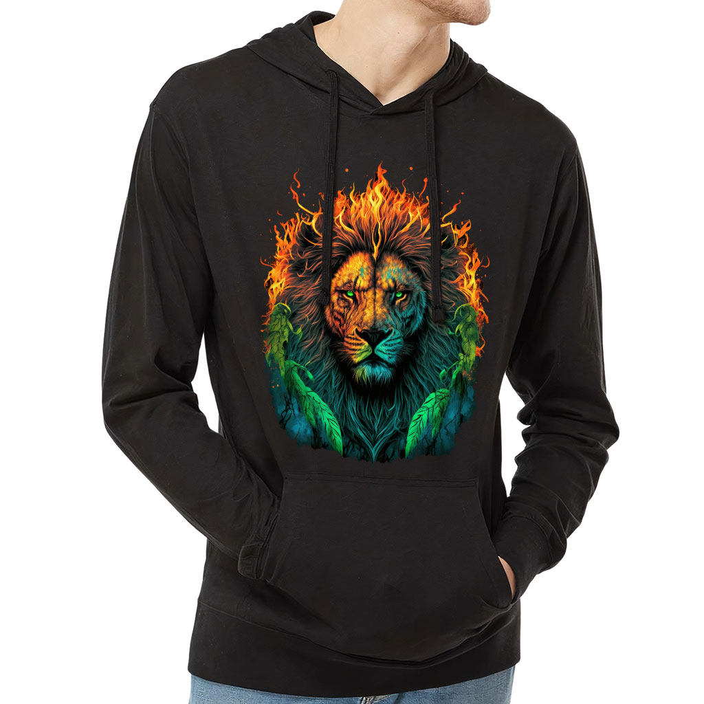 Flame Print Lightweight Jersey Hoodie works easily with a variety of outfits and is perfect for pairing with shorts, jeans, sneakers, and more. Suitable for summer, spring, autumn, and winter.