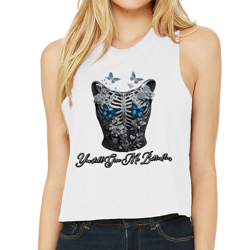 Floral Graphic Racerback Cropped Tank is made of high-quality materials. 52/48 Airlume combed and ring-spun cotton/polyester jersey. Athletic Heather is 90/10 Airlume combed and ring-spun cotton/polyester jersey.