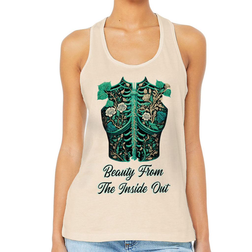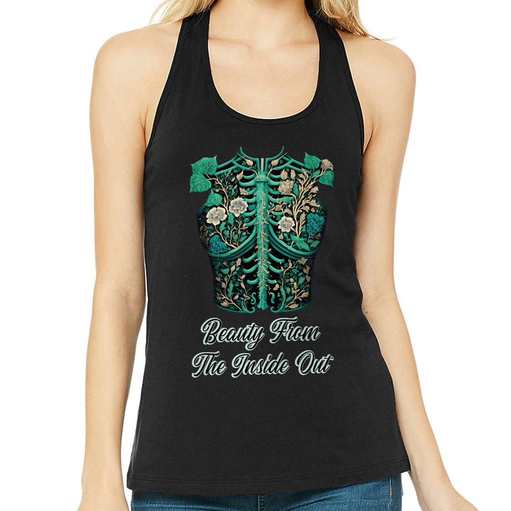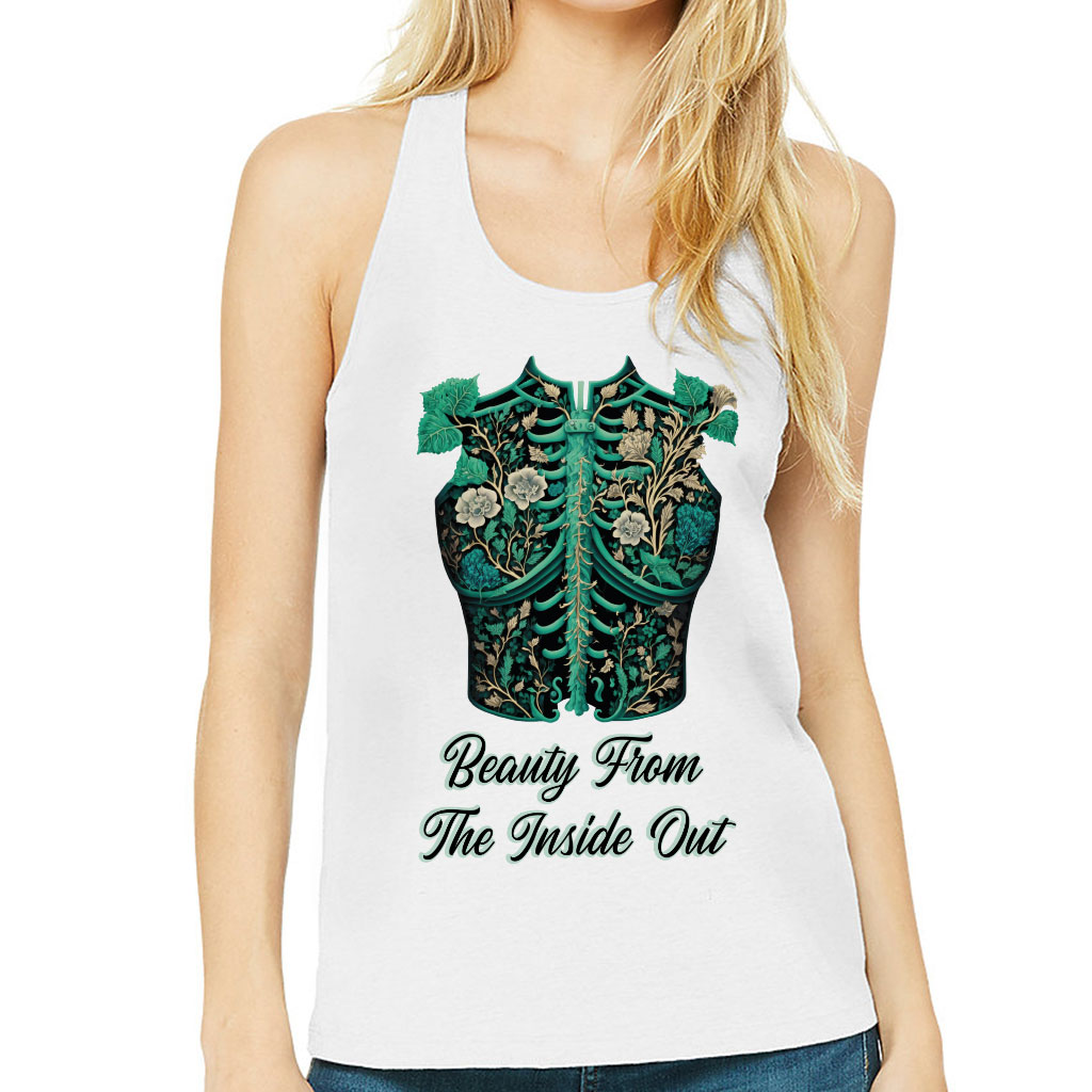 Women can wear our racerback tank top in a gym, on a race track, or spend leisure time at their homes. Print has a perfect length for women to get involved in activities demanding much effort.