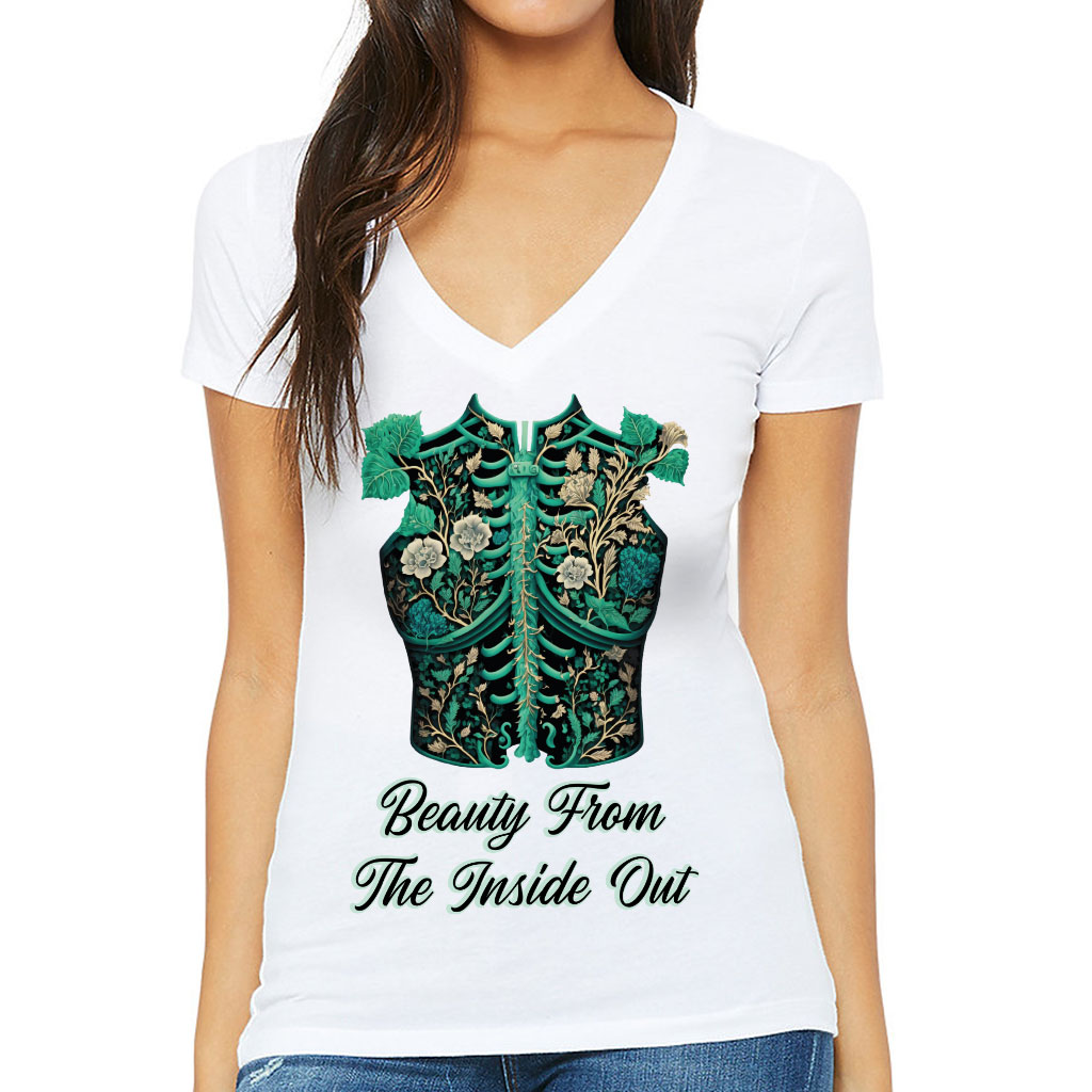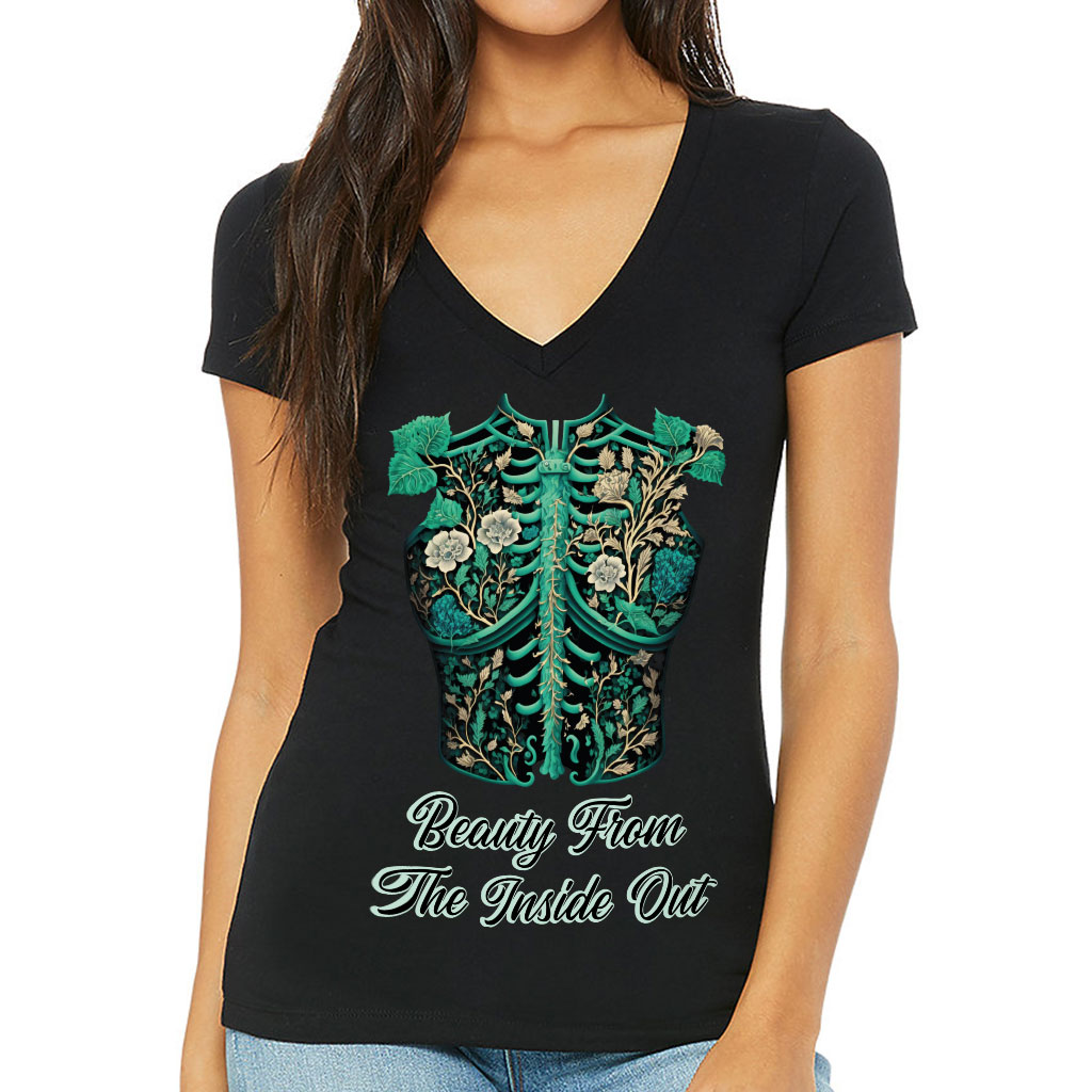 The fabric of our shirt is super soft, lightweight, breathable, and cozy. Flower Print Women’s V-Neck T-Shirt features a modern feminine fit, deep V-neck, short sleeves and superior Airlume combed and ring-spun cotton.