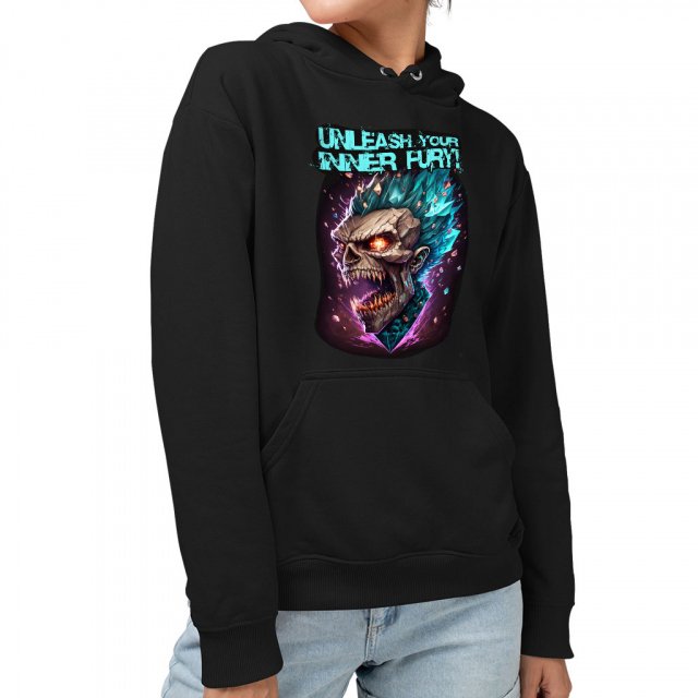 Fantasy Print Women’s Zip Hoodie – Scary Hooded Sweatshirt – Anger Hoodie