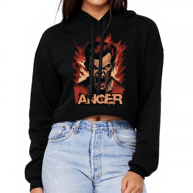 Anger Women’s Cropped Hoodie – Art Cropped Hoodie – Graphic Hooded Sweatshirt