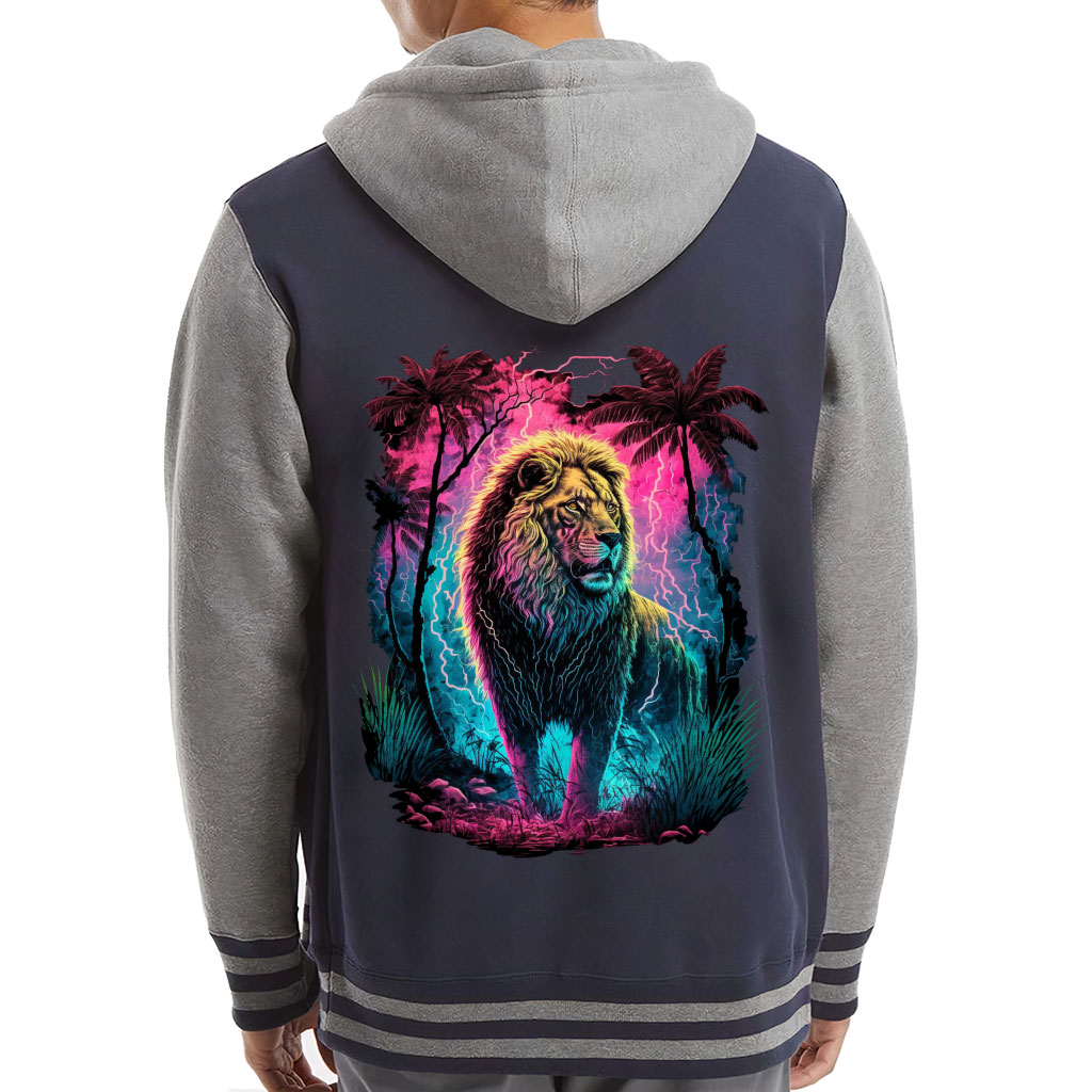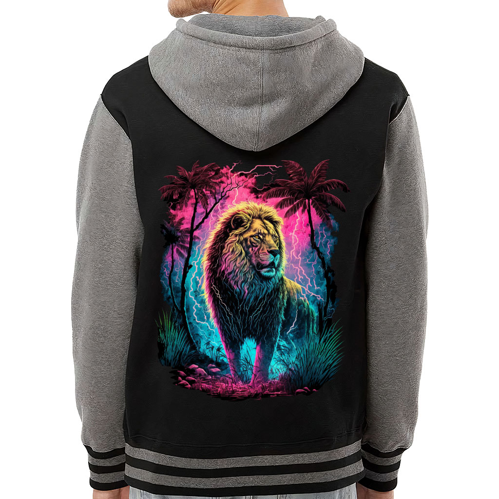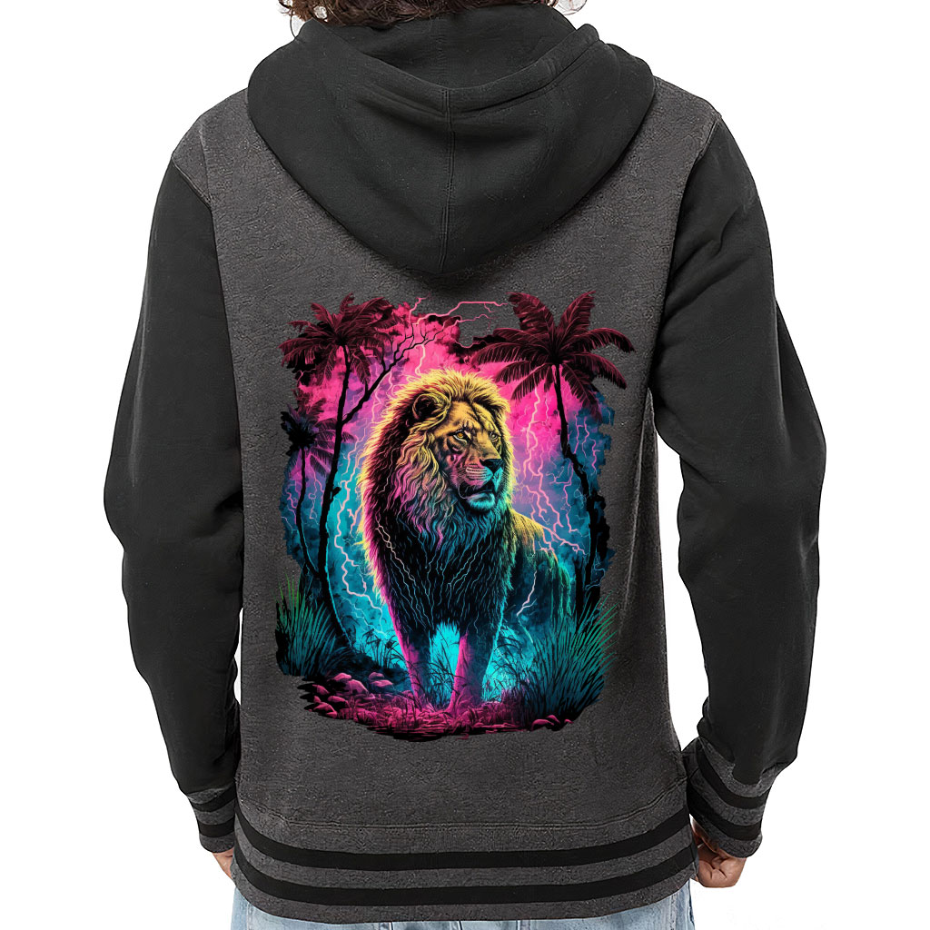 An essential closet staple, Jungle Design Varsity Hoodie is a go-to classic for hiking, training, or just kicking back. Pair it with your favorite shorts, athletic pants, jeans, or any pants you like.