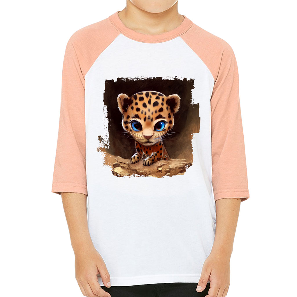 Leopard Design Kids’ Baseball T-Shirt is made from a comfortable cotton blend that keeps them looking and feeling cool all day long. A favorite piece that looks great on everyone and with everything; this baseball tee is essential for any child’s wardrobe.