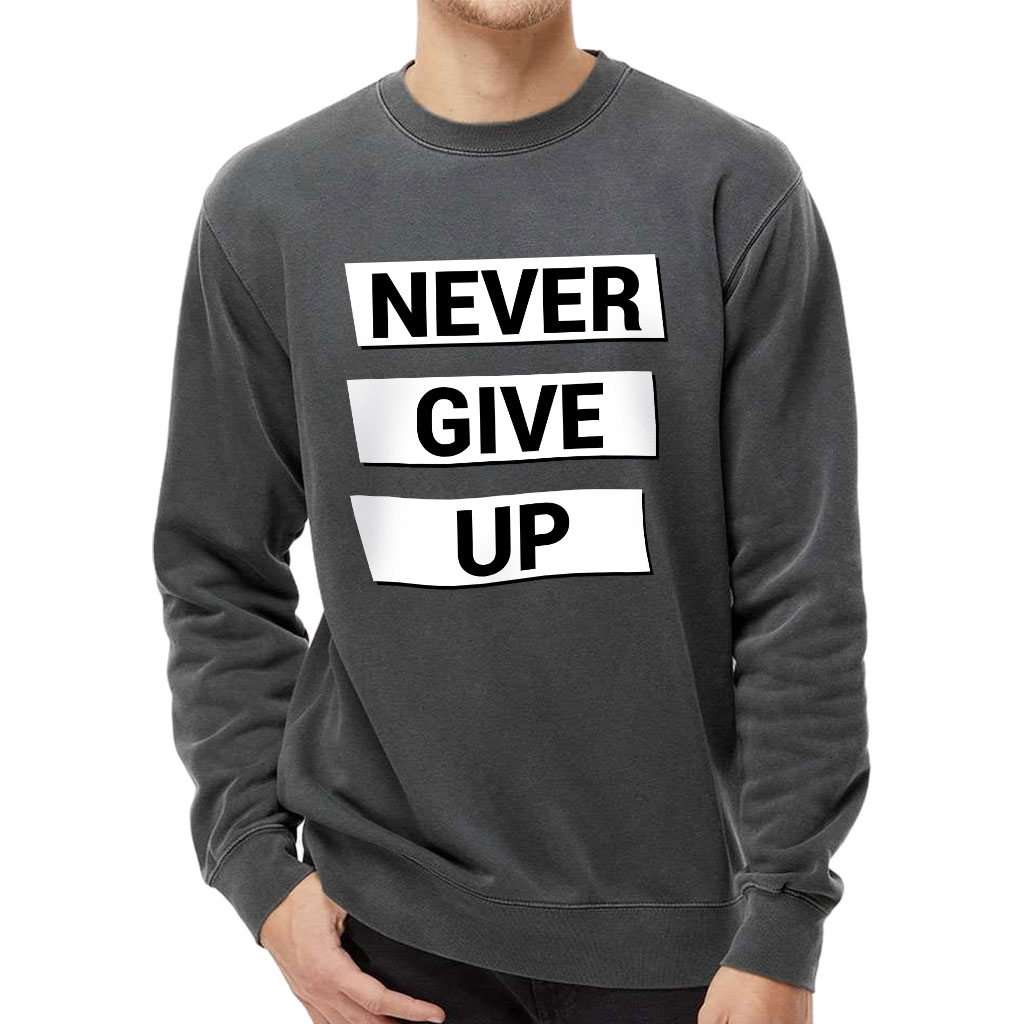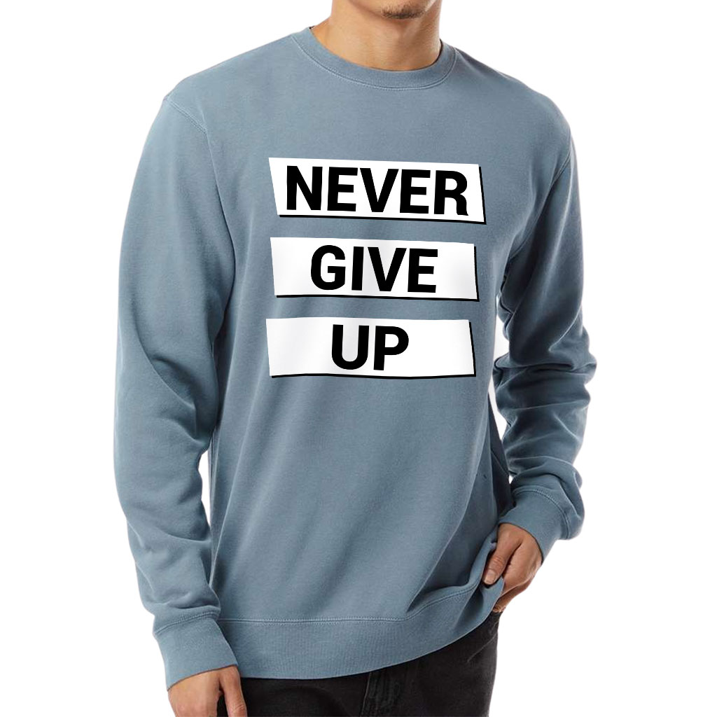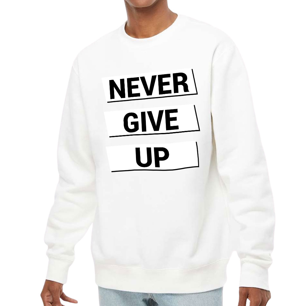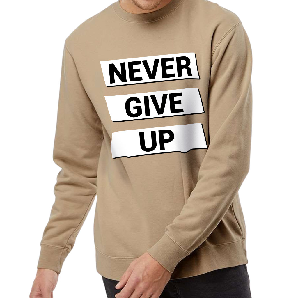 The high-quality fabric of Never Give Up Midweight Sweatshirt makes you feel good and comfortable when wearing it. Crew neck design allows you breathing room and comfort of next level.