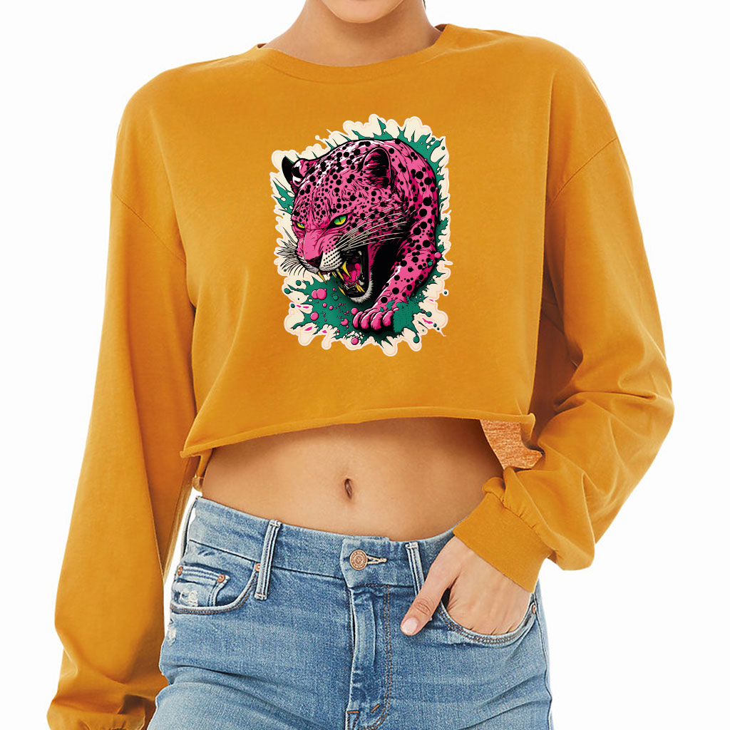 Soft but durable cotton material will never let you down. Panther Design Cropped Long Sleeve T-Shirt makes you have a good wear experience all day. Suitable for summer days, parties, traveling and casual wear.