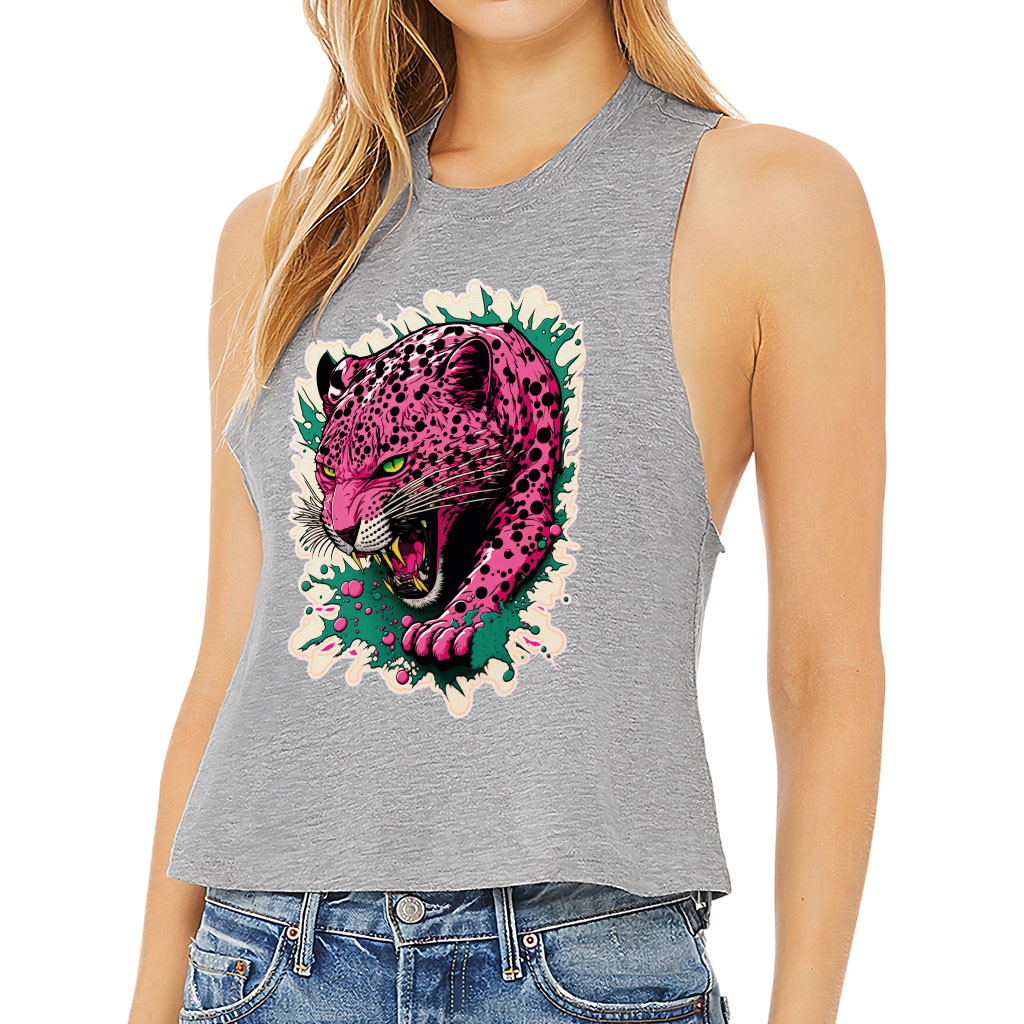 Panther Design Racerback Cropped Tank is made of high-quality materials. 52/48 Airlume combed and ring-spun cotton/polyester jersey. Athletic Heather is 90/10 Airlume combed and ring-spun cotton/polyester jersey.