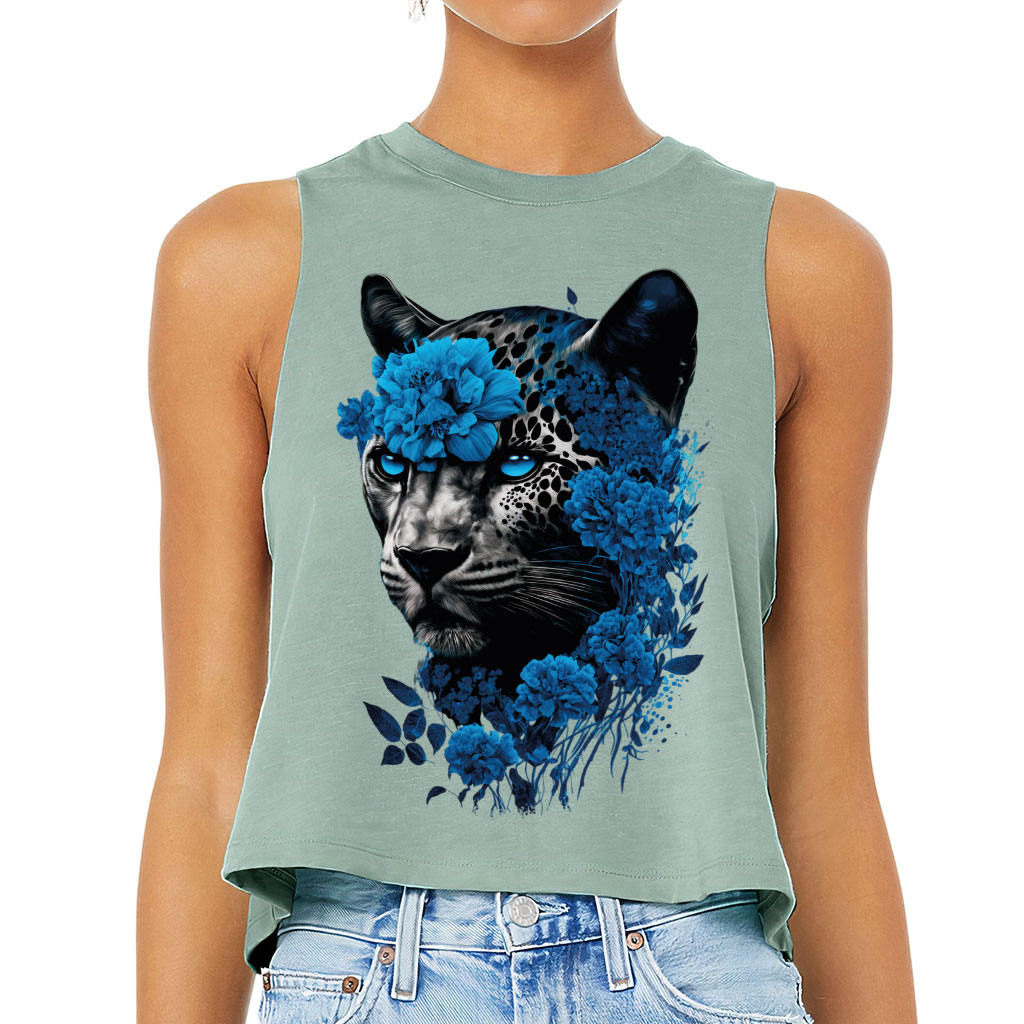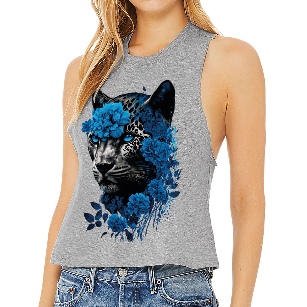 Panther Face Racerback Cropped Tank is made of high-quality materials. 52/48 Airlume combed and ring-spun cotton/polyester jersey. Athletic Heather is 90/10 Airlume combed and ring-spun cotton/polyester jersey.