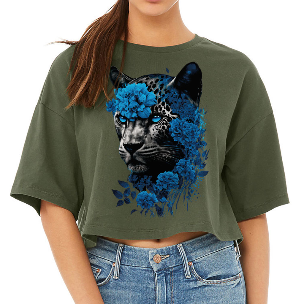 Panther Face Women’s Crop Tee Shirt is sure to make you stand out in a crowd! Match this shirt with shorts, jeans, leggings, sweatpants or skirts. Suitable for spring, summer, fall, winter, and all year.