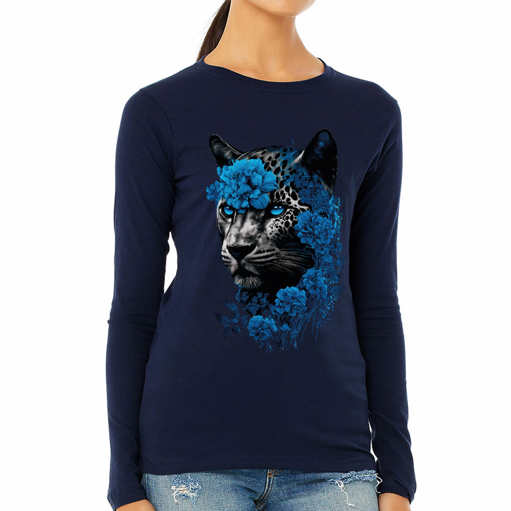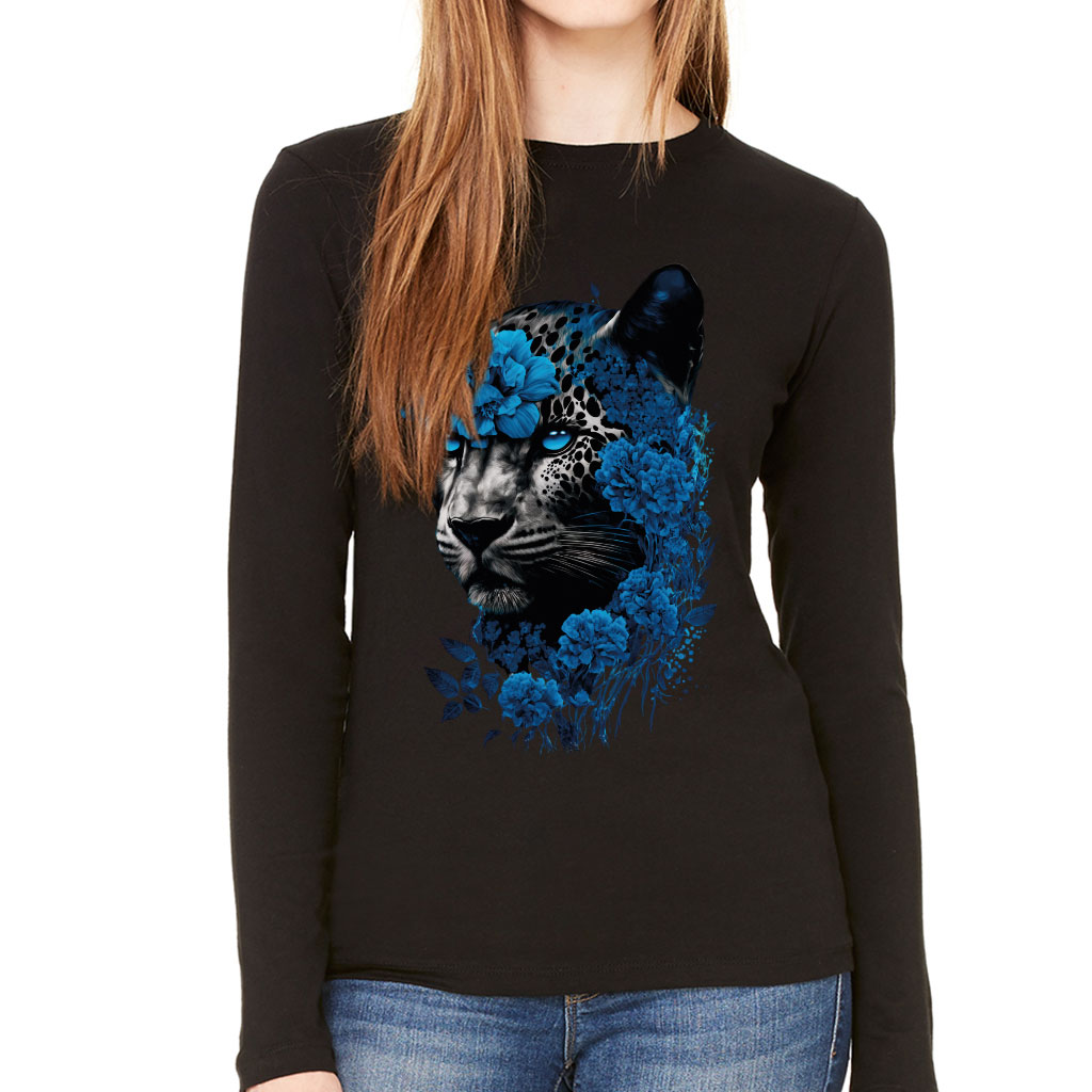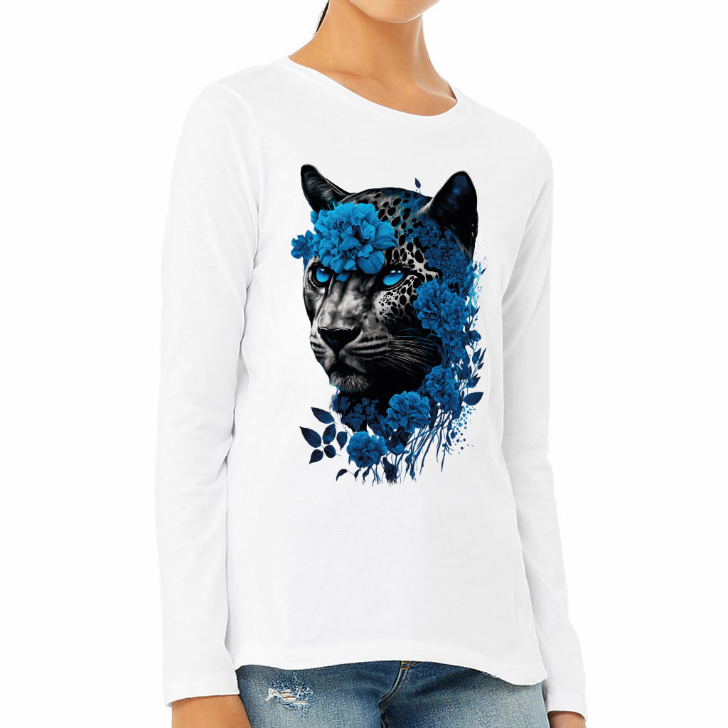 Panther Face Women’s Long Sleeve T-Shirt – Floral Long Sleeve Tee – Beautiful T-Shirt
