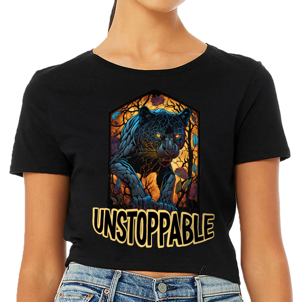 Panther Print Women’s Cropped T-Shirt is no ordinary piece of clothing. Its form-fitting silhouette and soft fit and feel provide a retail fit for clothing that’s true to size.
