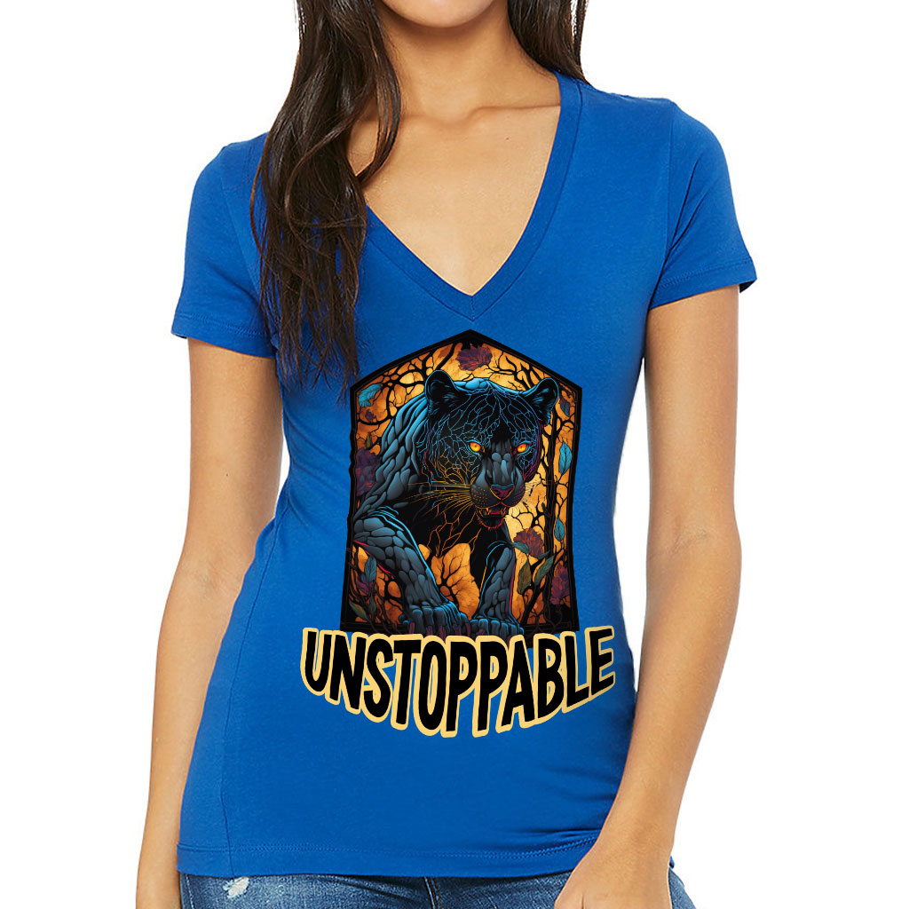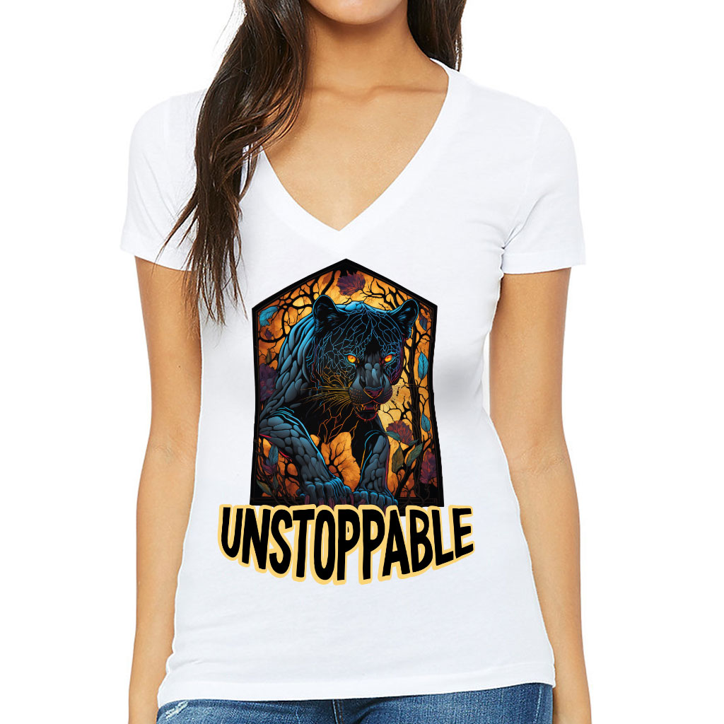 The fabric of our shirt is super soft, lightweight, breathable, and cozy. Panther Print Women’s V-Neck T-Shirt features a modern feminine fit, deep V-neck, short sleeves and superior Airlume combed and ring-spun cotton.