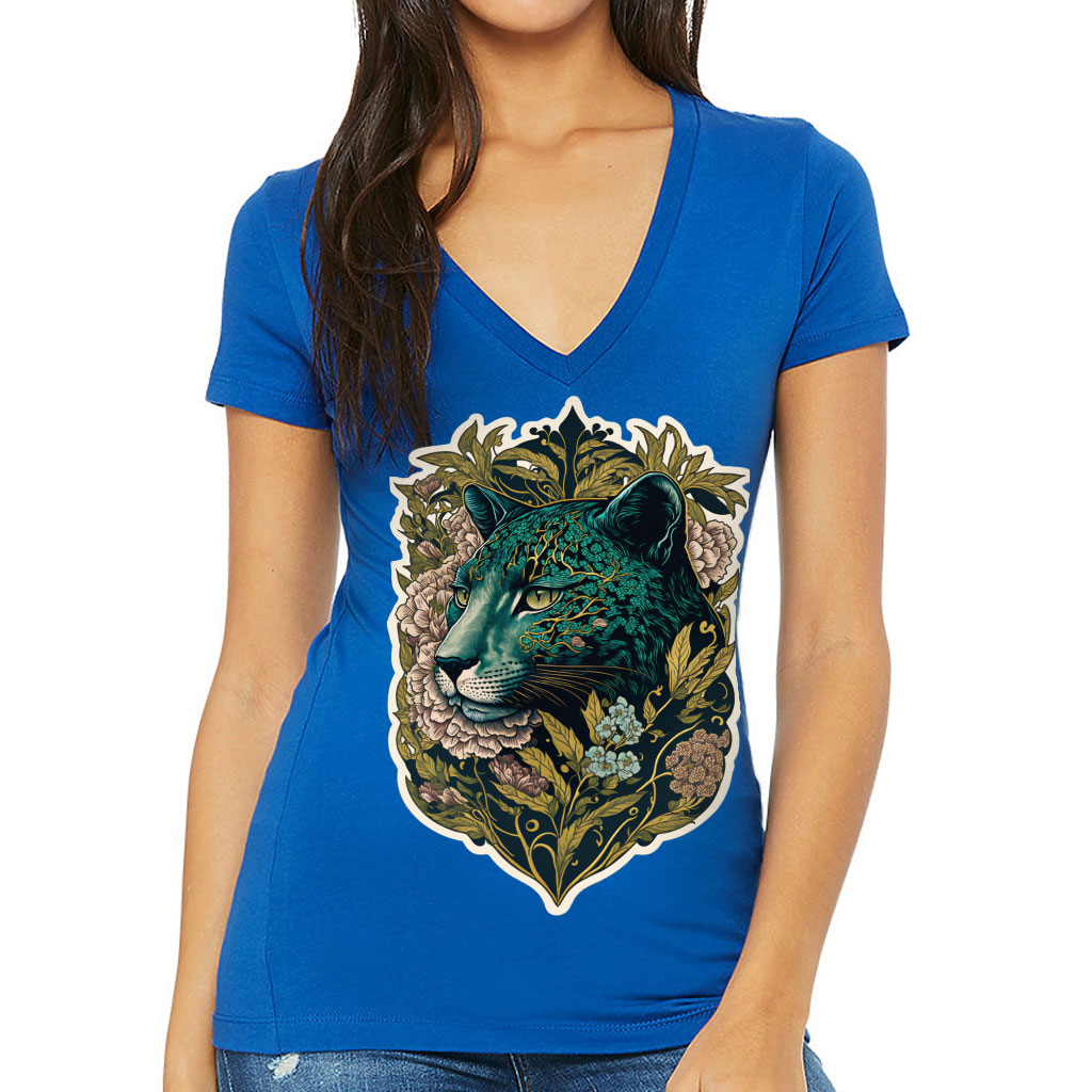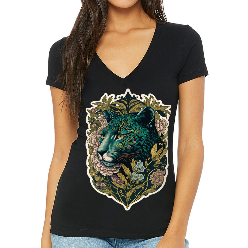 The fabric of our shirt is super soft, lightweight, breathable, and cozy. Panther Women’s V-Neck T-Shirt features a modern feminine fit, deep V-neck, short sleeves and superior Airlume combed and ring-spun cotton.
