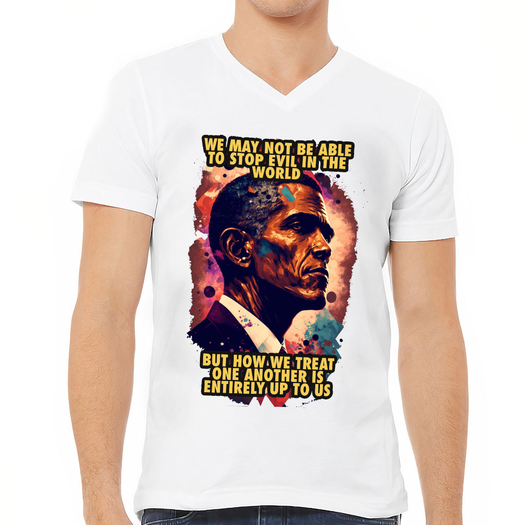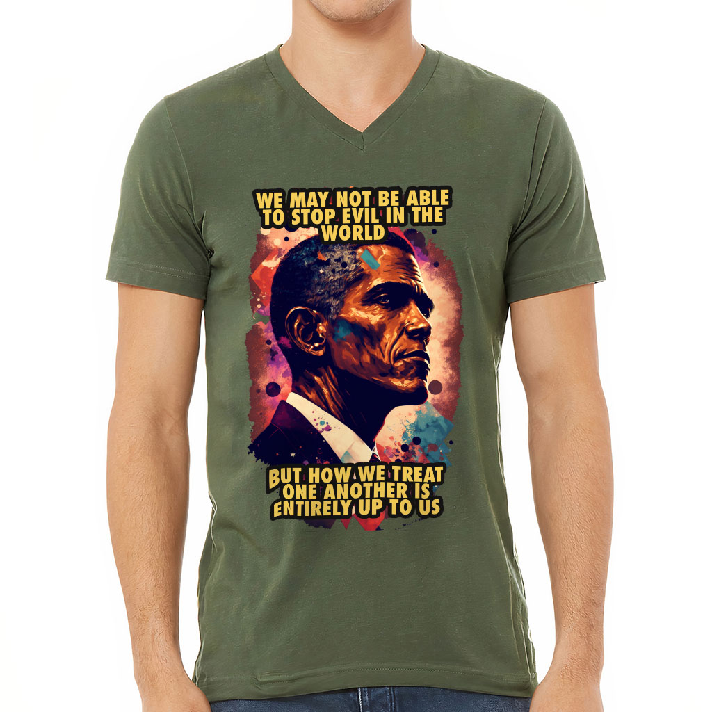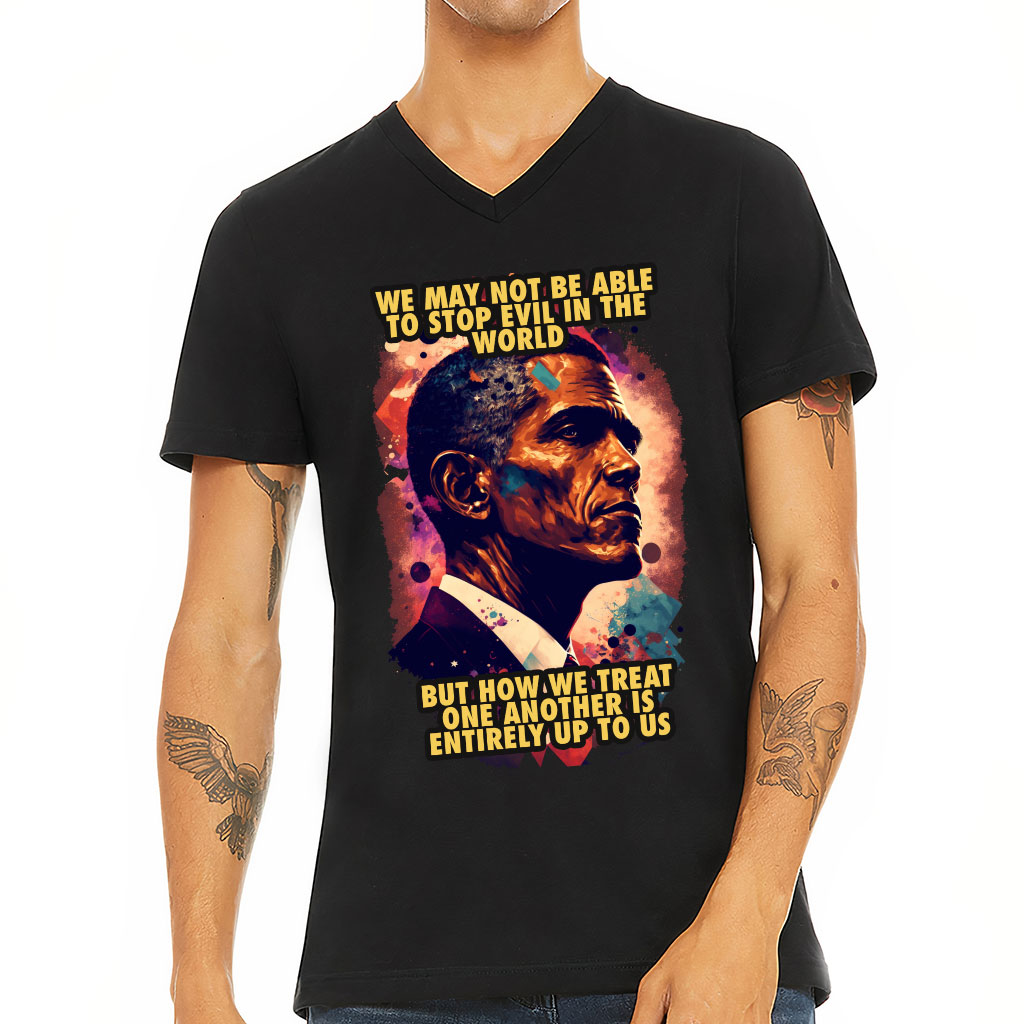 Portrait Print V-Neck T-Shirt is proudly made with 7x less water than average manufacturers, in recycle-friendly facilities that also guarantee zero sweatshop conditions.