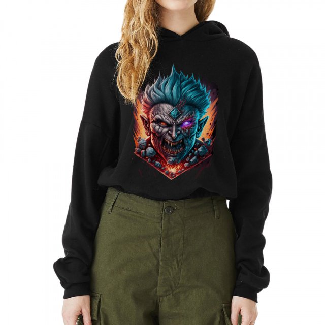 Scary Design Cinched Bottom Hoodie – Graphic Women’s Hoodie – Print Hooded Sweatshirt