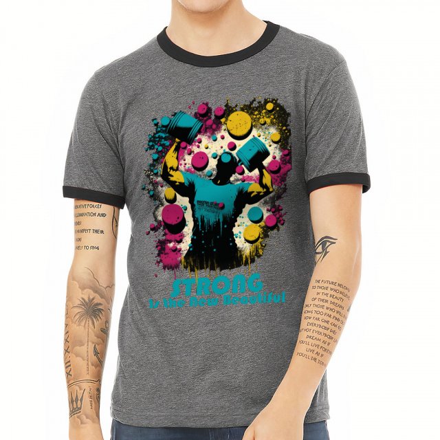 Strong is Beautiful Ringer T-Shirt – Colorful T-Shirt – Gym Ringer Tee