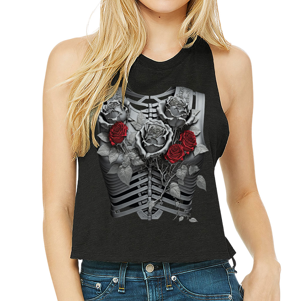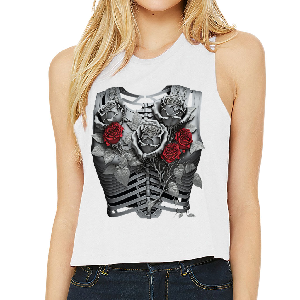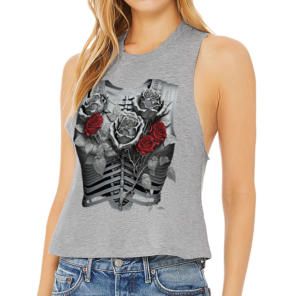 Rose Design Racerback Cropped Tank – Beautiful Women’s Tank – Plant Tank Top