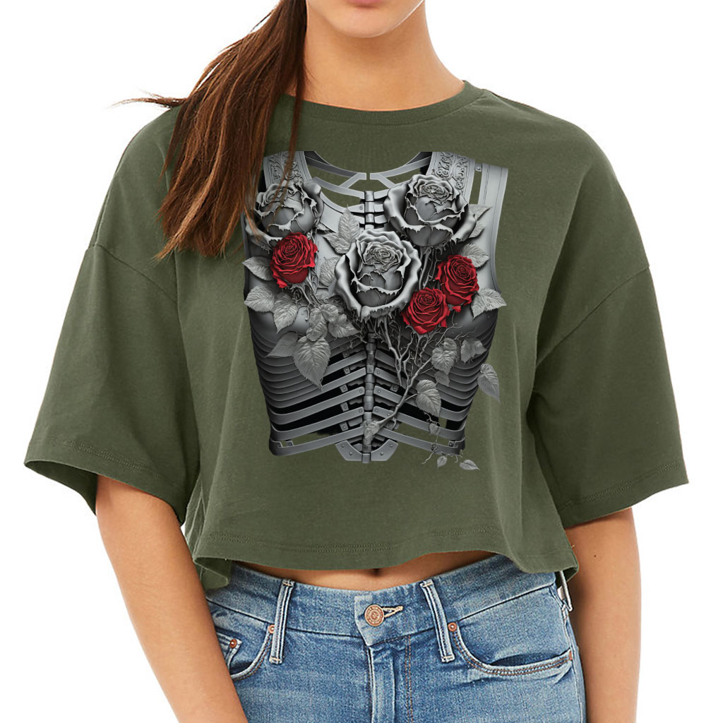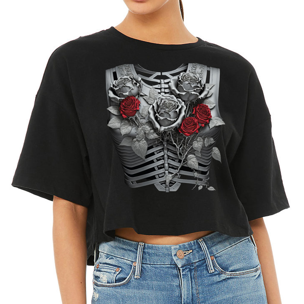 Rose Design Women’s Crop Tee Shirt is sure to make you stand out in a crowd! Match this shirt with shorts, jeans, leggings, sweatpants or skirts. Suitable for spring, summer, fall, winter, and all year.