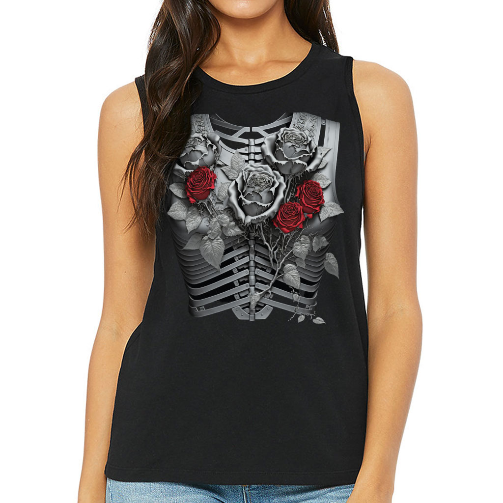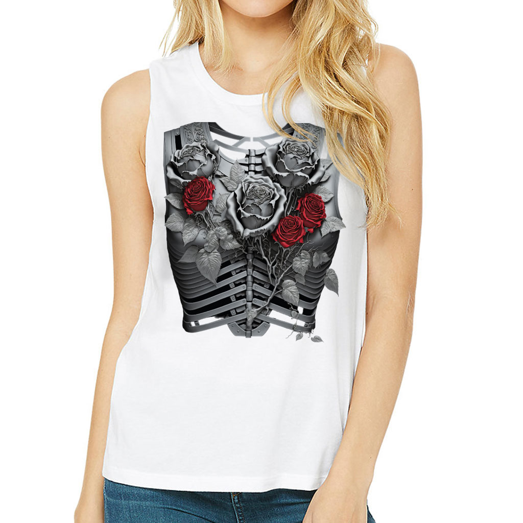 Rose Design Women’s Muscle Tank is made from high-quality materials. The soft fabric fits perfectly to the body and suits any type of figure. Our products will make your everyday comfortable, as well as add charm to your image and emphasize your style.