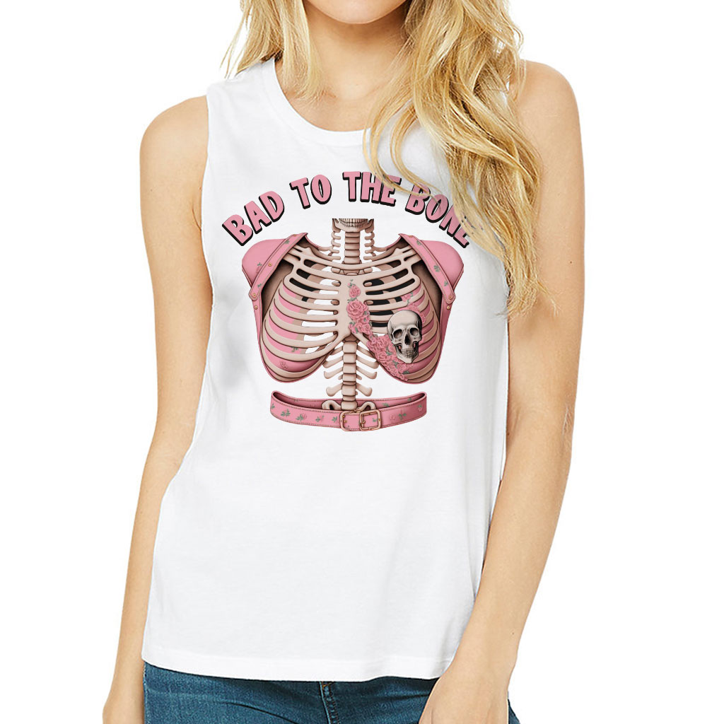 Skeleton Design Women’s Muscle Tank is made from high-quality materials. The soft fabric fits perfectly to the body and suits any type of figure. Our products will make your everyday comfortable, as well as add charm to your image and emphasize your style.