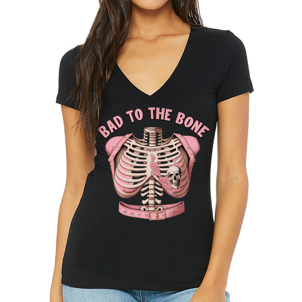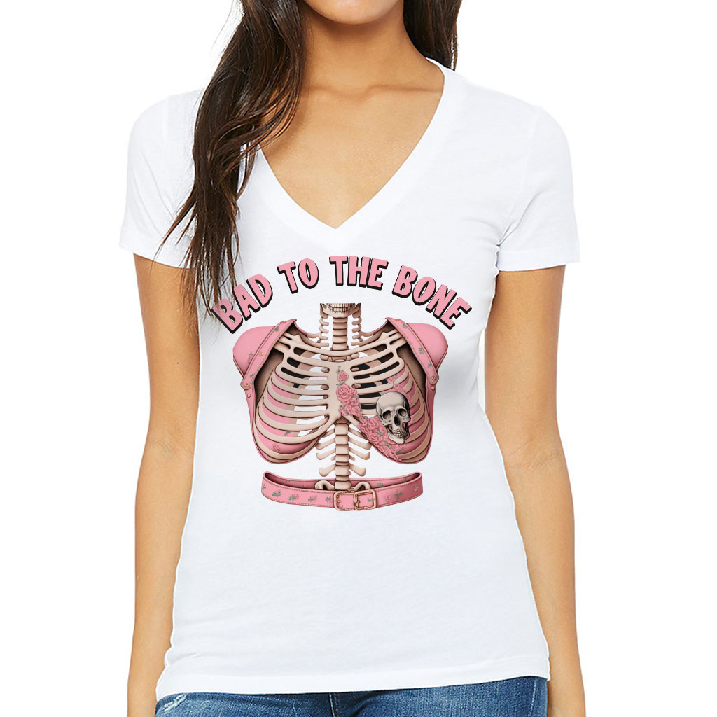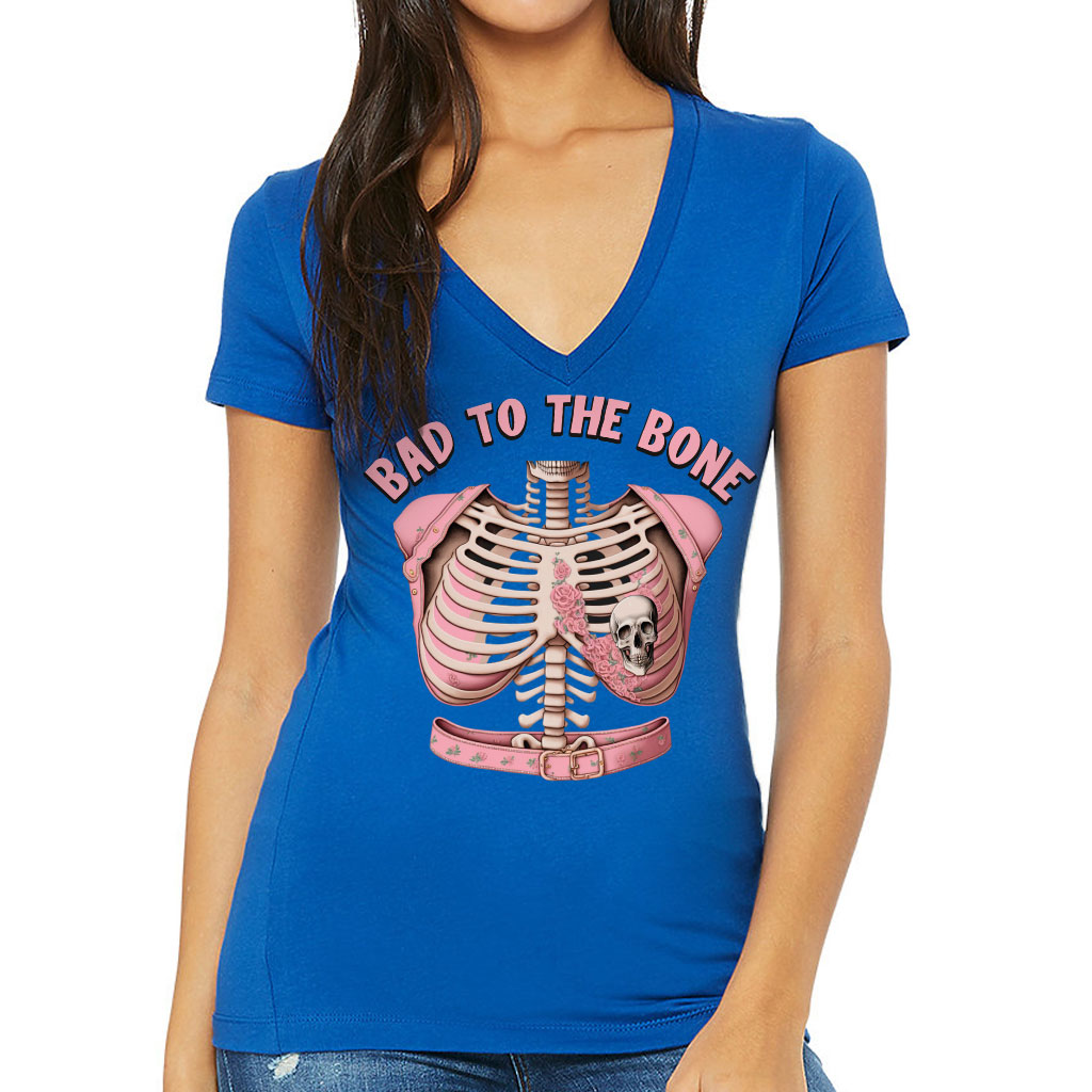 The fabric of our shirt is super soft, lightweight, breathable, and cozy. Skeleton Design Women’s V-Neck T-Shirt features a modern feminine fit, deep V-neck, short sleeves and superior Airlume combed and ring-spun cotton.