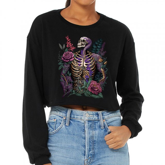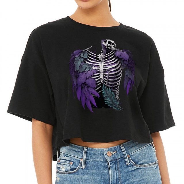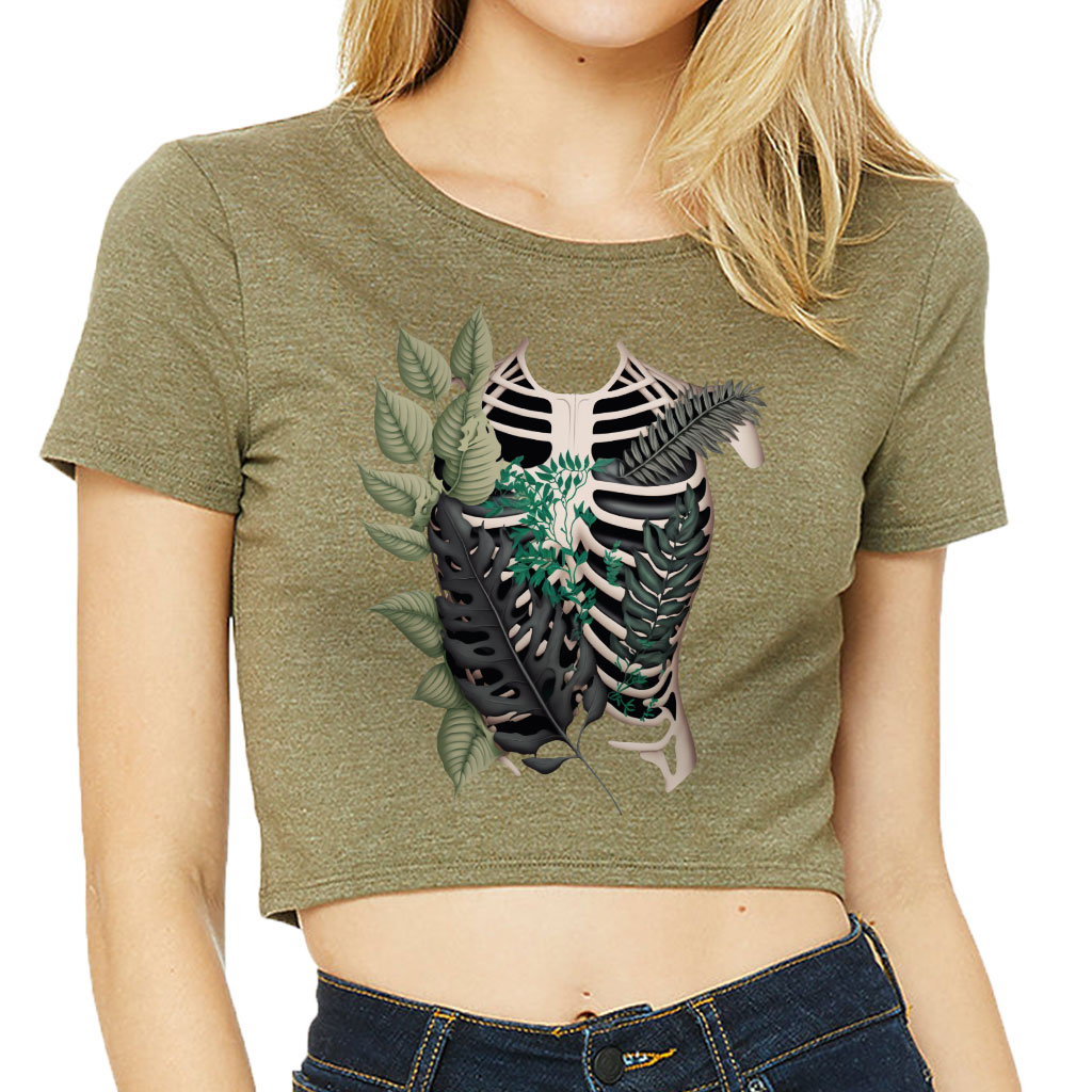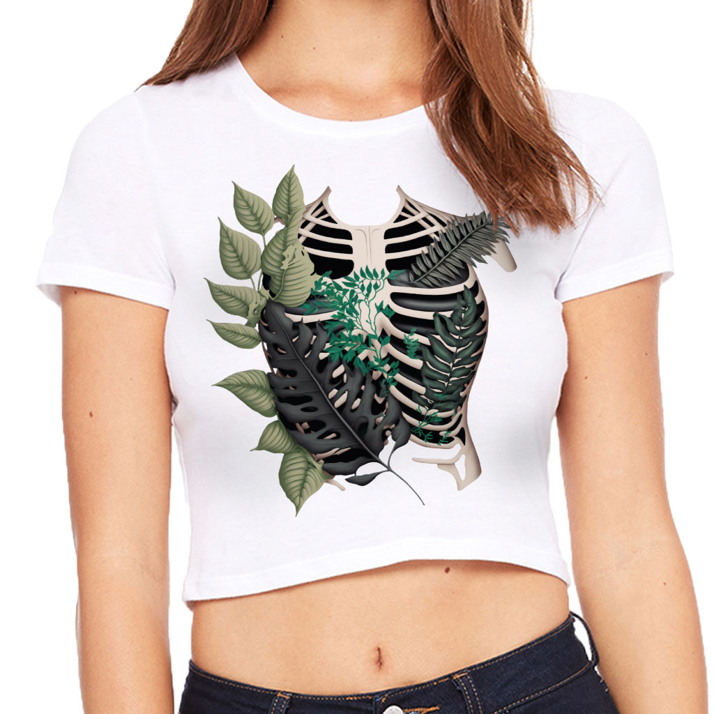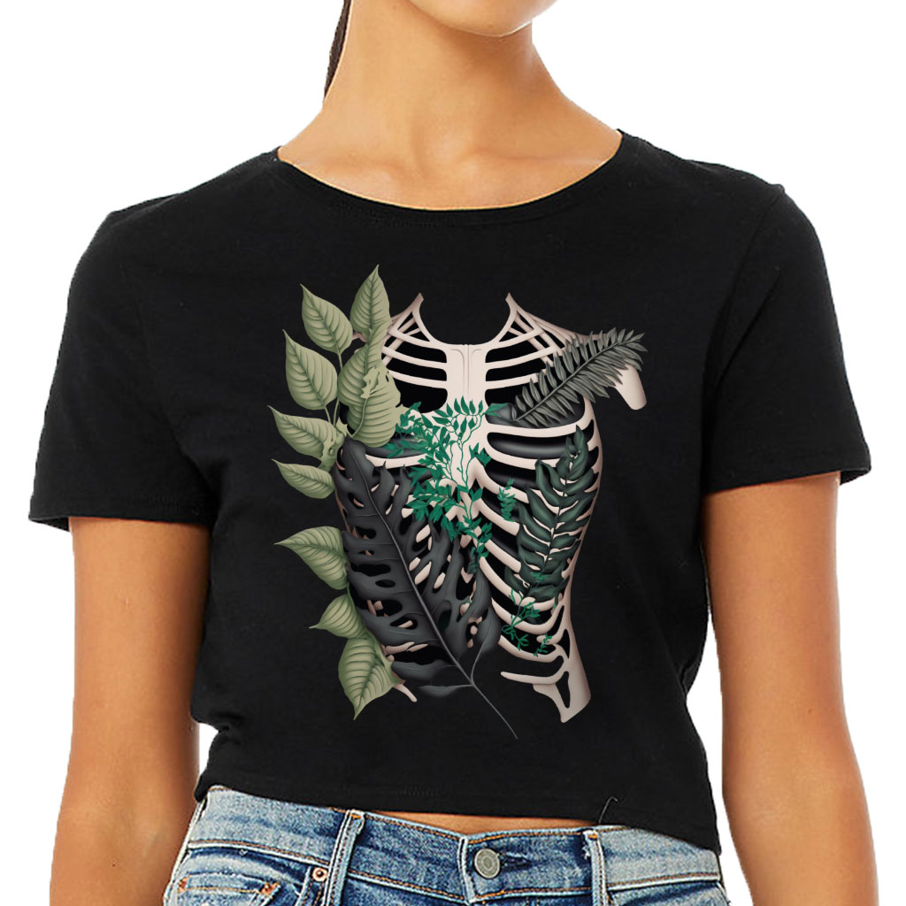 Skeleton Print Women’s Cropped T-Shirt – Plant Crop Top – Art Cropped Tee