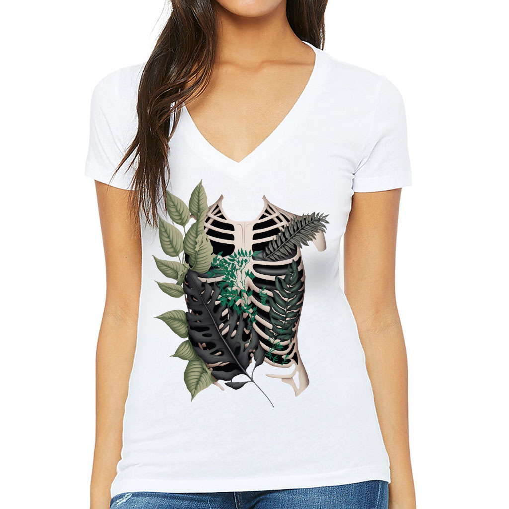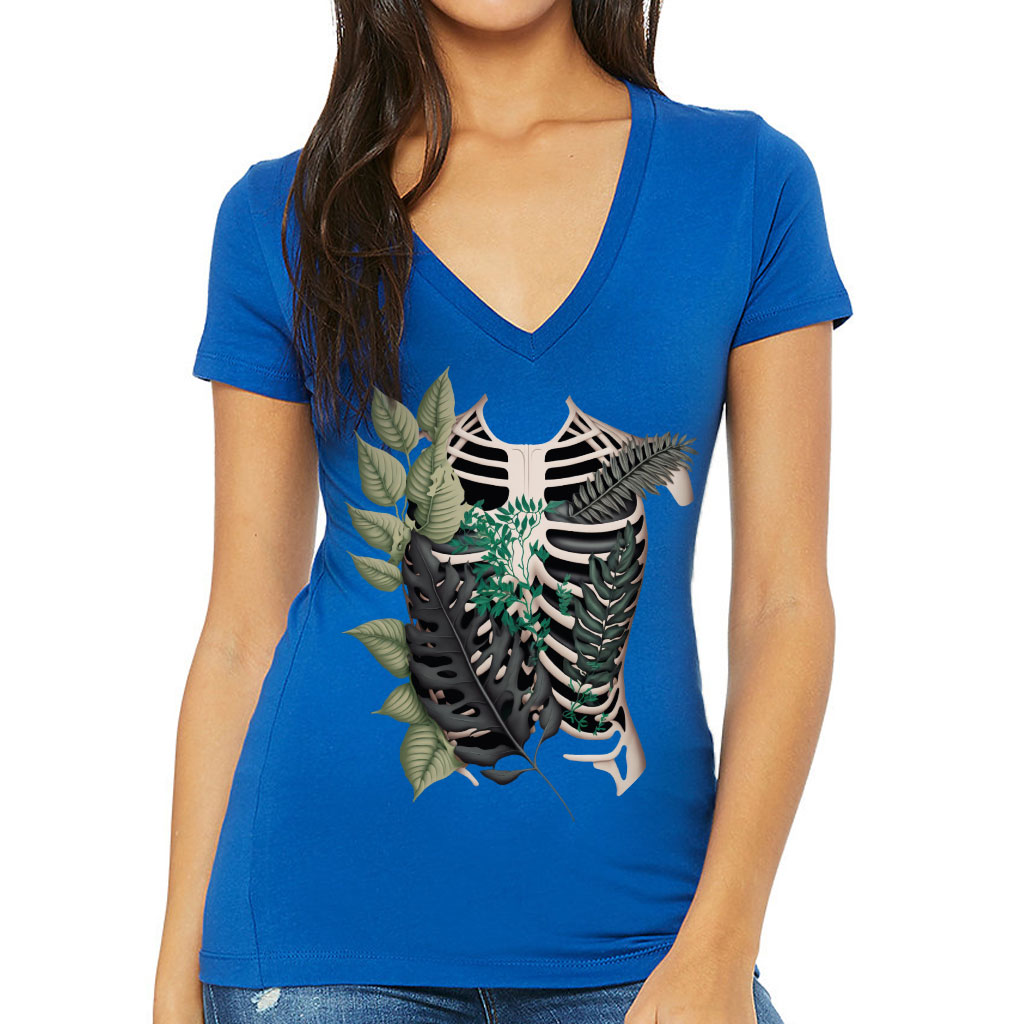 The fabric of our shirt is super soft, lightweight, breathable, and cozy. Skeleton Print Women’s V-Neck T-Shirt features a modern feminine fit, deep V-neck, short sleeves and superior Airlume combed and ring-spun cotton.