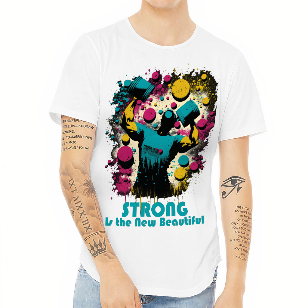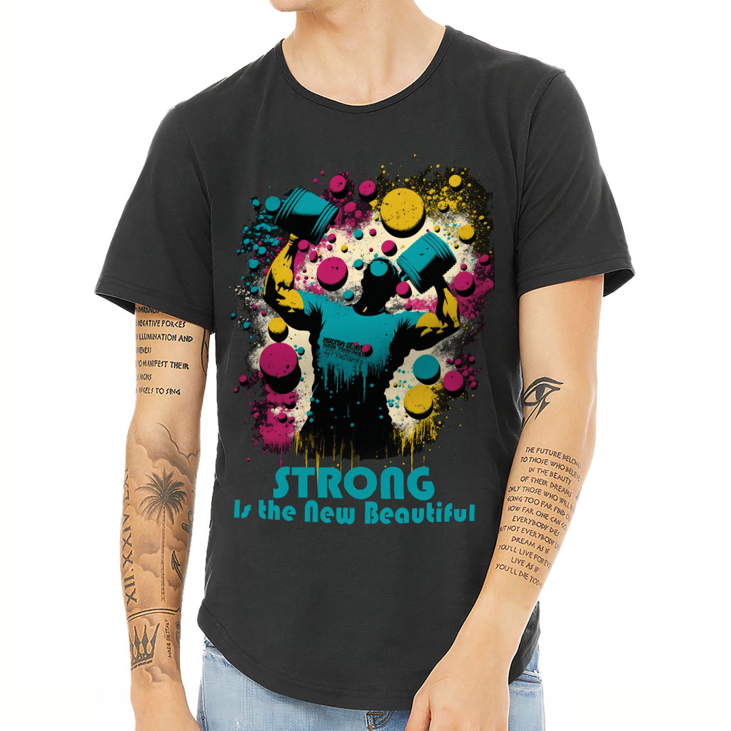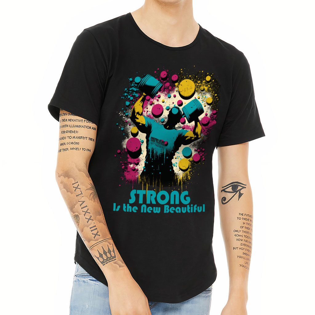 Strong is Beautiful Curved Hem T-Shirt is no ordinary piece of clothing. Its 3/8 neck binding, subtle