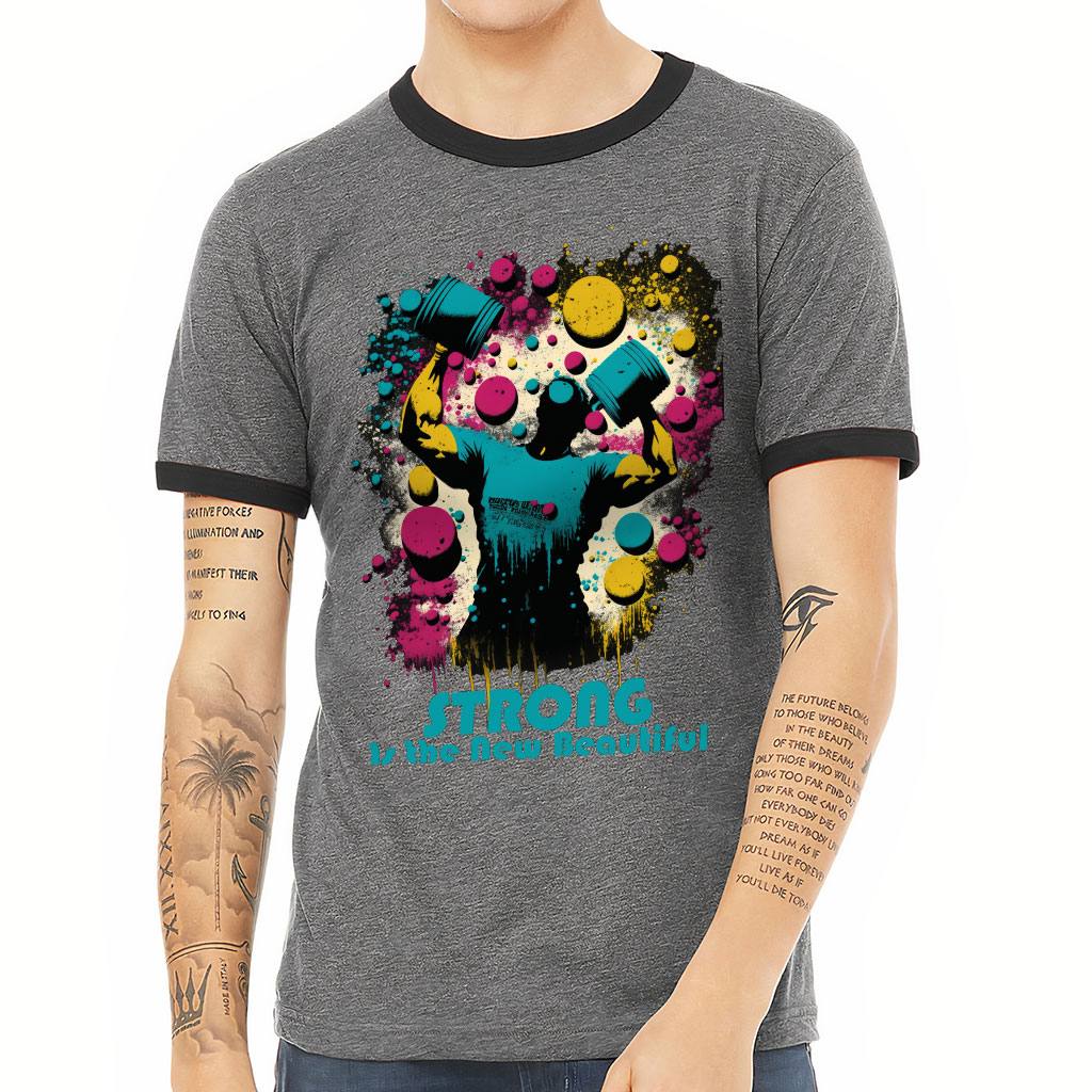 This trendy T-Shirt for men is made of a lightweight and soft cotton-poly blend, breathable and comfortable to wear. Strong is Beautiful Ringer T-Shirt will give you an excellent wearing experience all day.