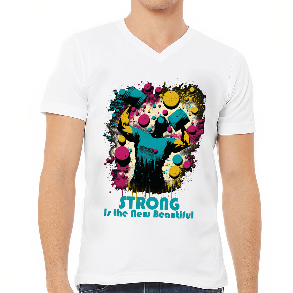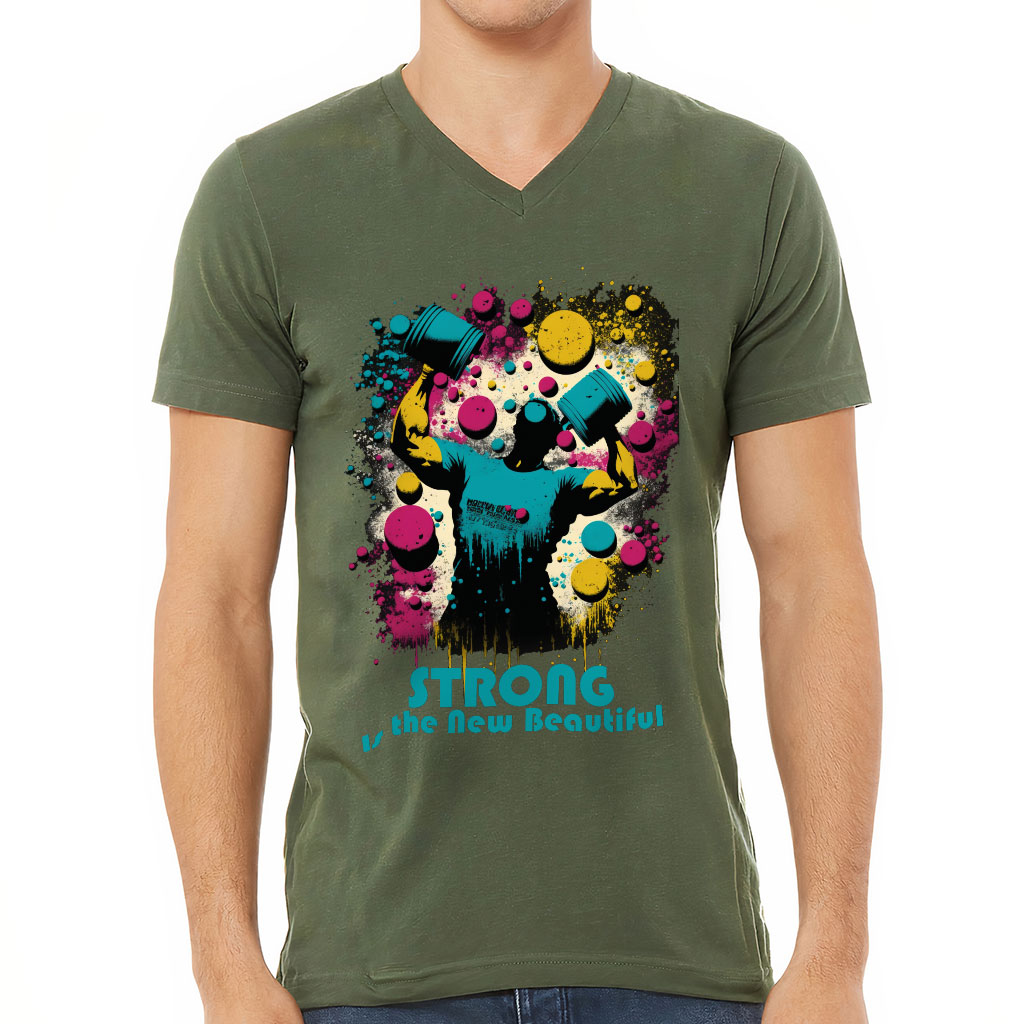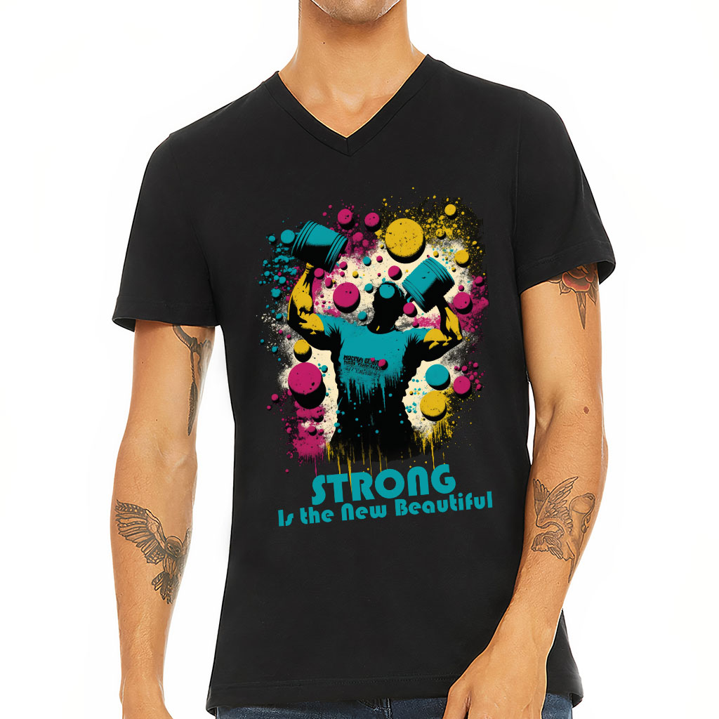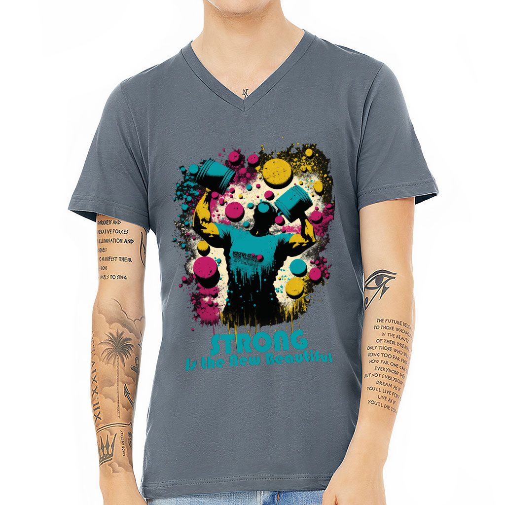 Strong is Beautiful V-Neck T-Shirt is proudly made with 7x less water than average manufacturers, in recycle-friendly facilities that also guarantee zero sweatshop conditions.