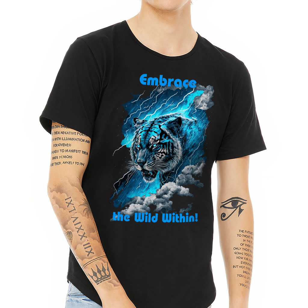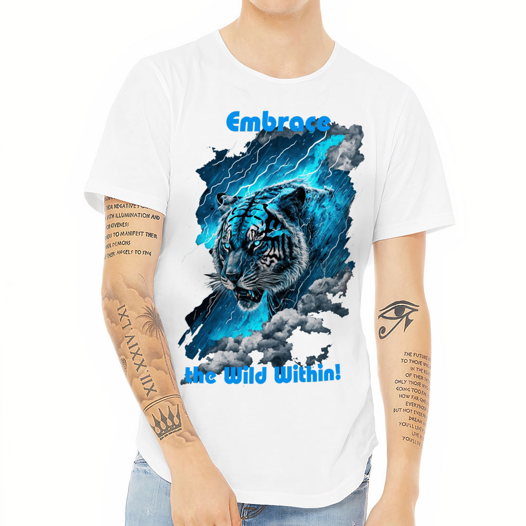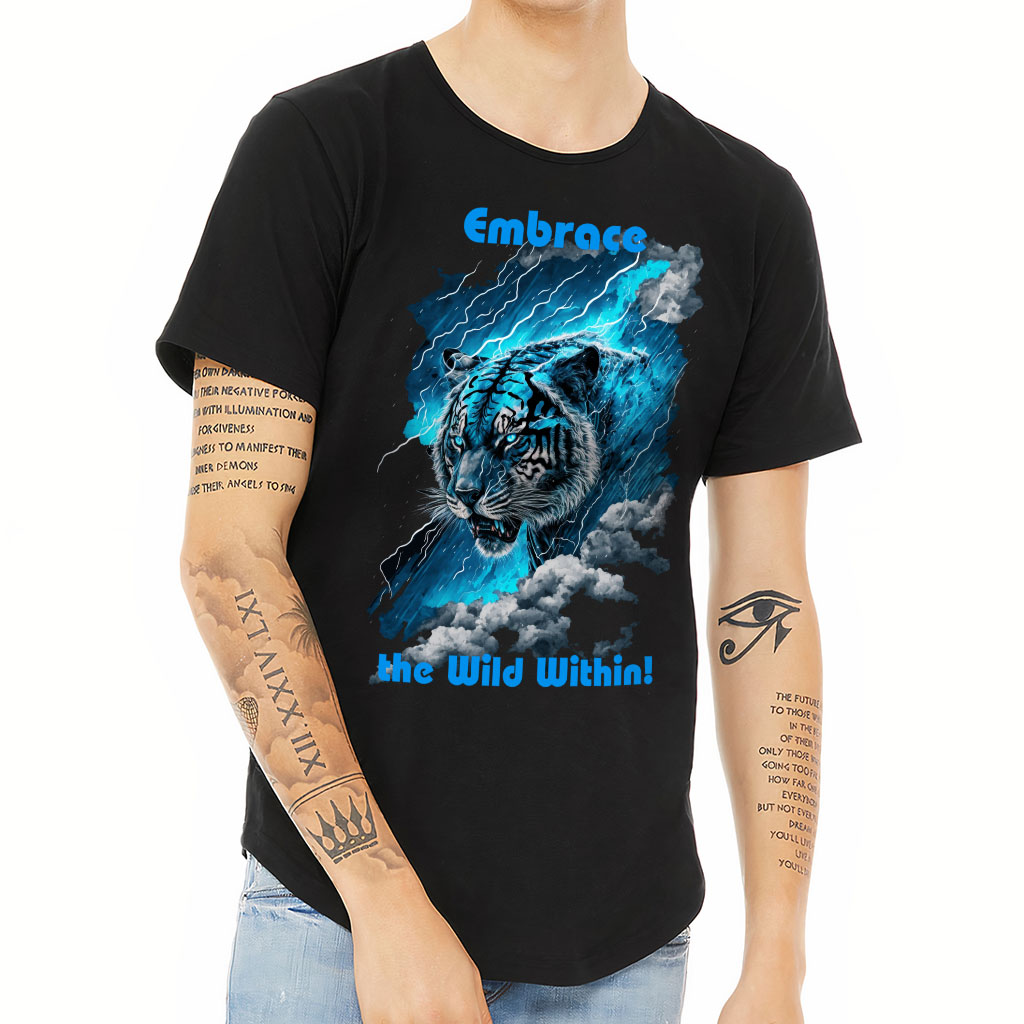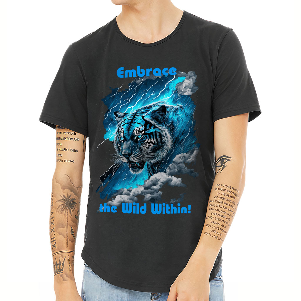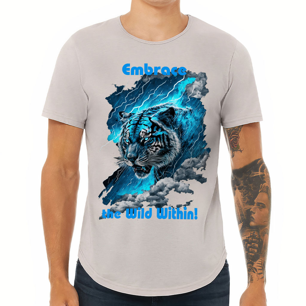 Tiger Design Curved Hem T-Shirt is no ordinary piece of clothing. Its 3/8 neck binding, subtle