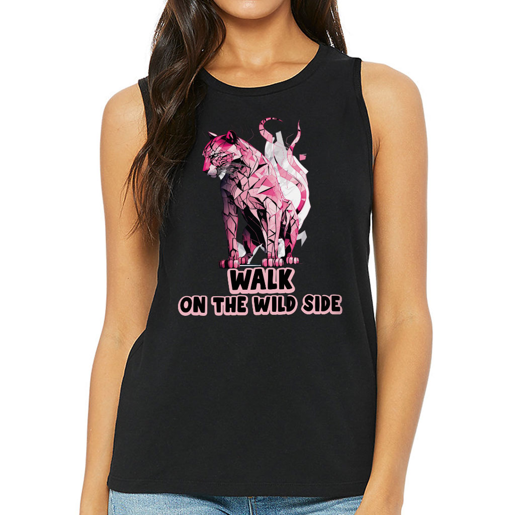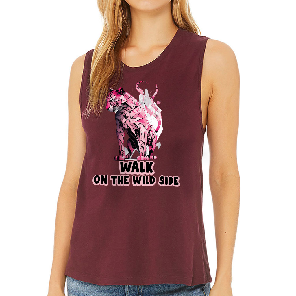 Walk on the Wild Side Women’s Muscle Tank is made from high-quality materials. The soft fabric fits perfectly to the body and suits any type of figure. Our products will make your everyday comfortable, as well as add charm to your image and emphasize your style.